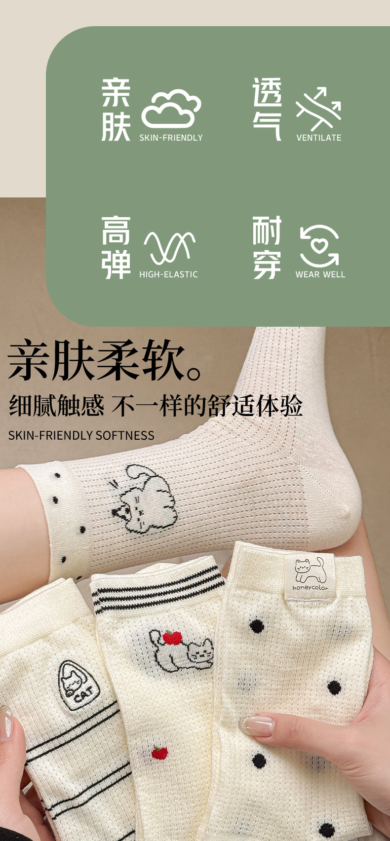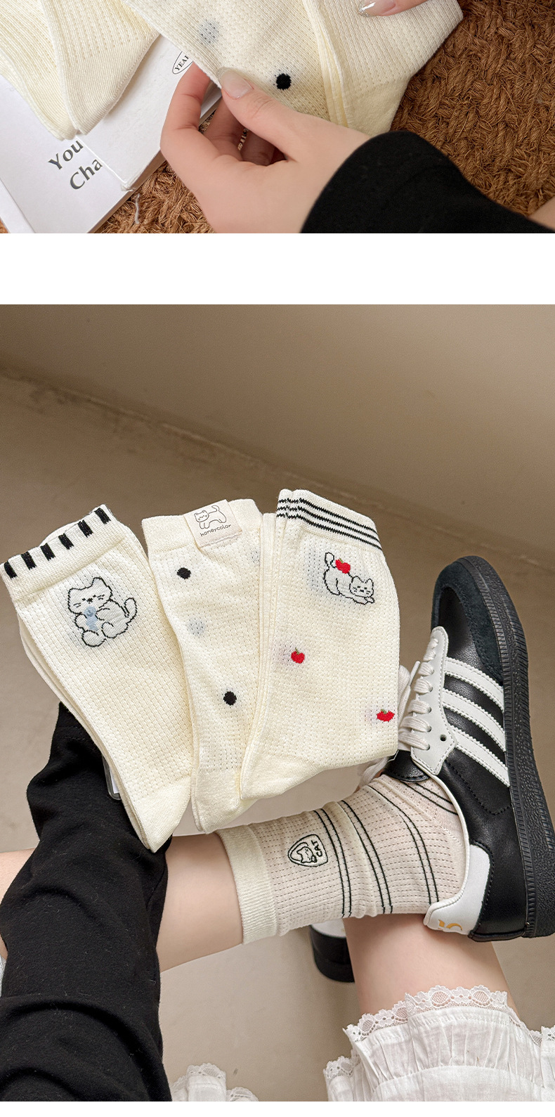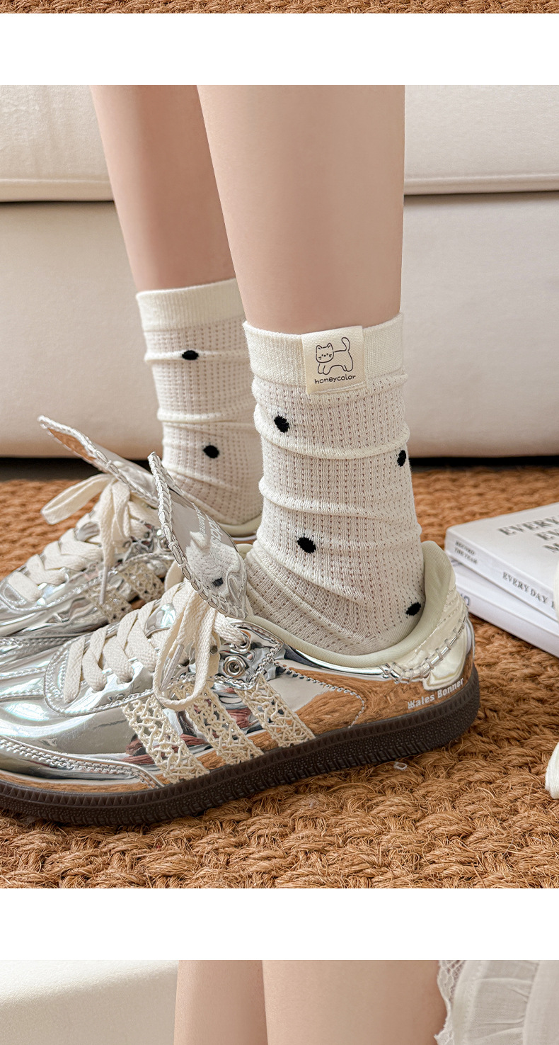 물방울 무늬 메쉬 통기성 양말 어린이 쌓인 양말 봄과 여름 얇은 면 튜브 양말 여름 귀여운 만화 스타킹