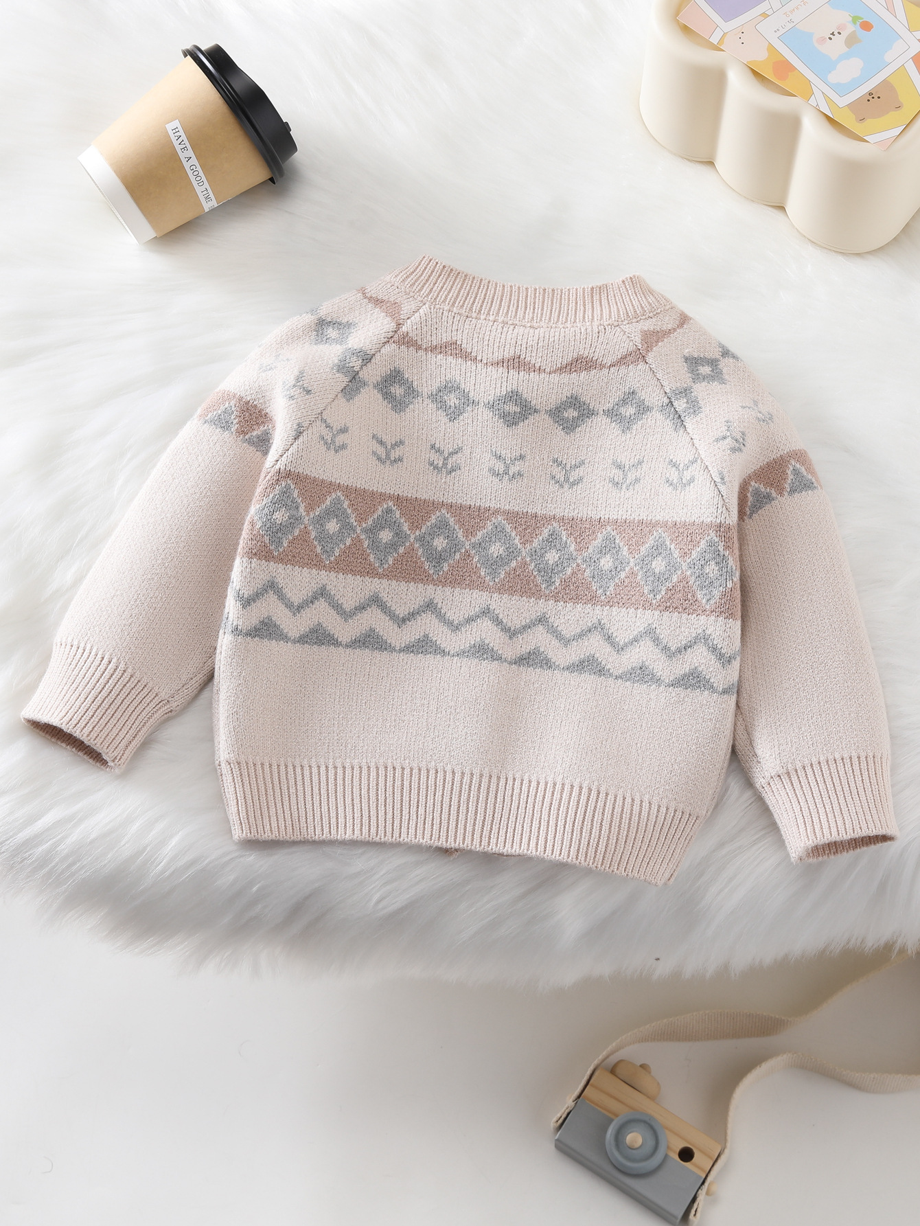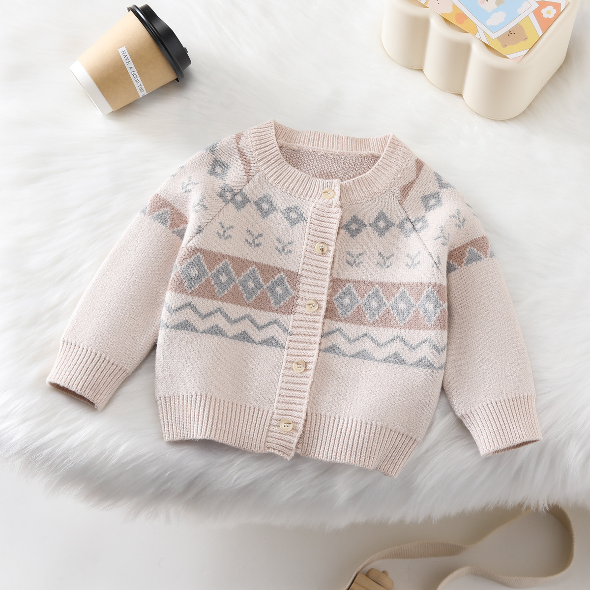 2025 년 봄과 가을 국경 간 폭발 어린이 및 영유아의 소년과 소녀를위한 페어 아일랜드 카디건 자카드 니트웨어 코트스토어 가기