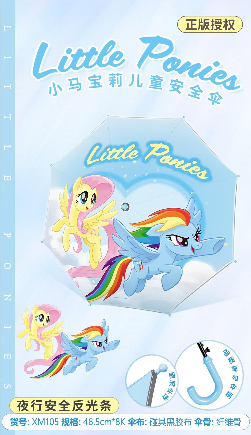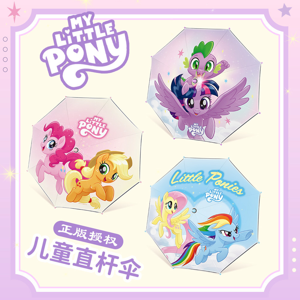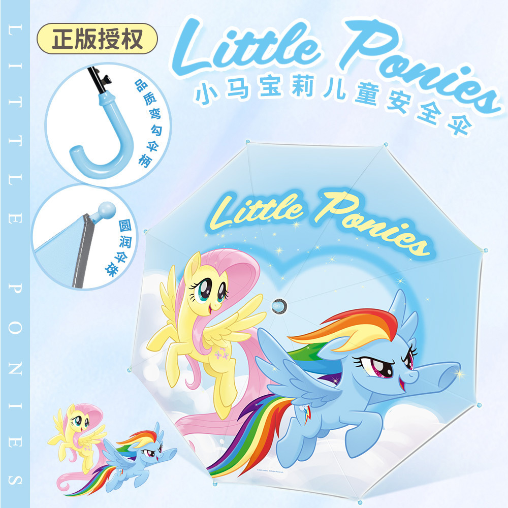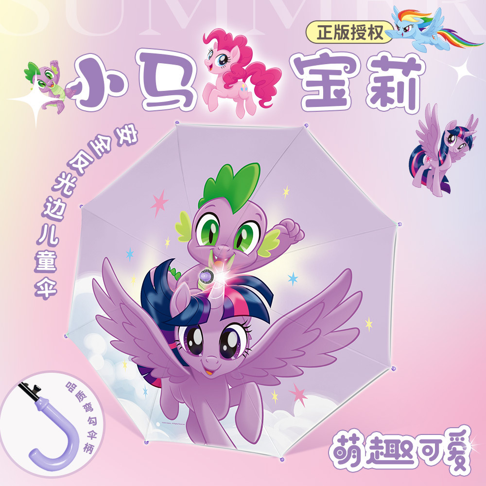 정품 조랑말 아기 어린이 우산 안전 어린이 우산 검은 고무 태양 보호 UV 보호 자동 반사 스트립 가장자리 안전 우산