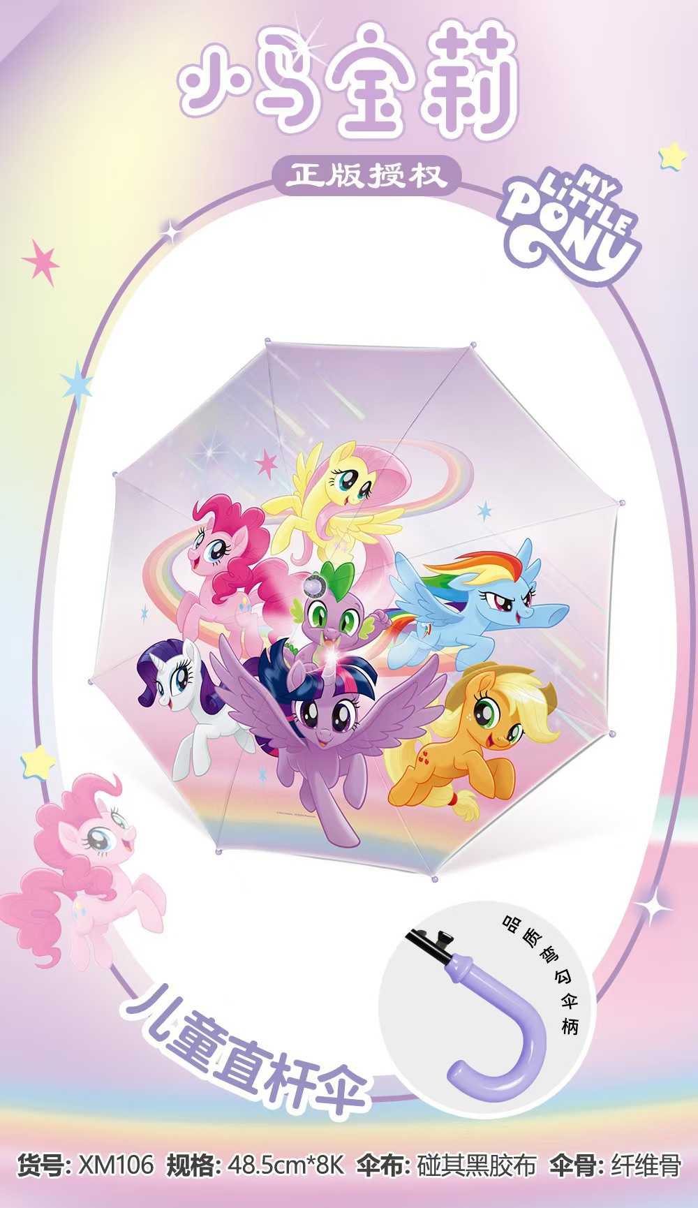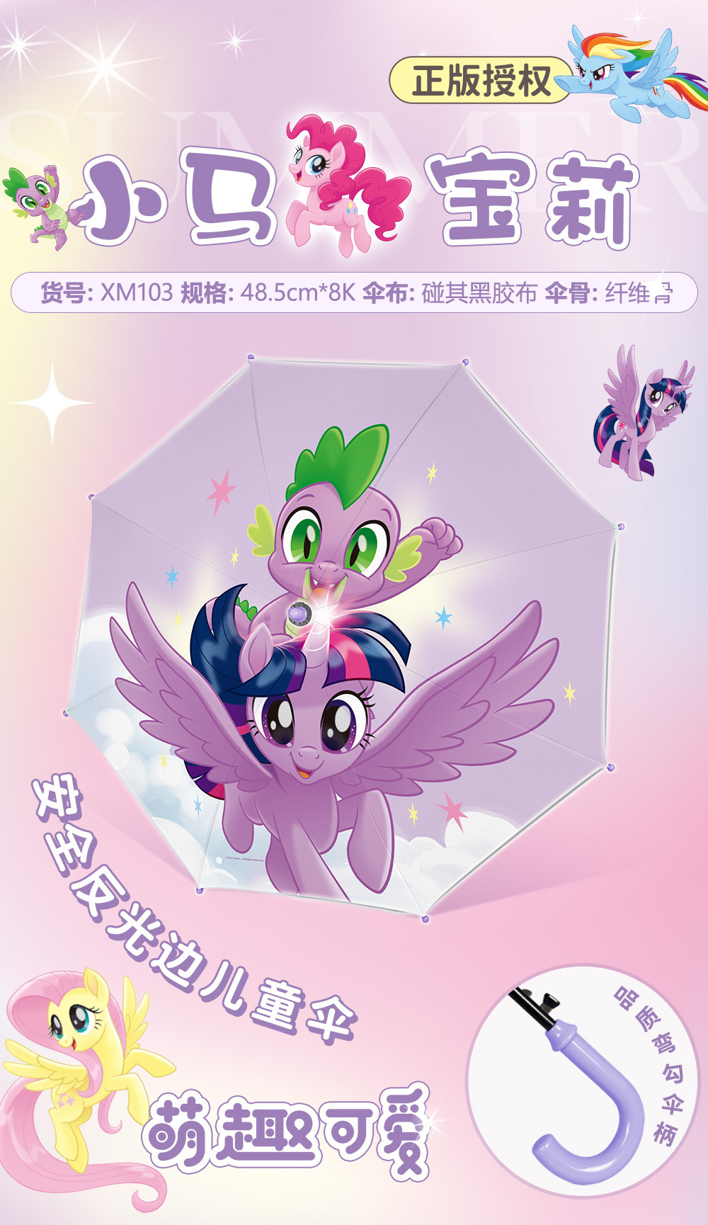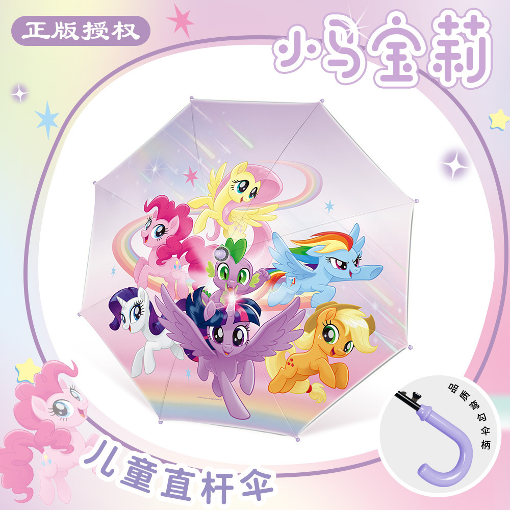 정품 조랑말 아기 어린이 우산 안전 어린이 우산 검은 고무 태양 보호 UV 보호 자동 반사 스트립 가장자리 안전 우산