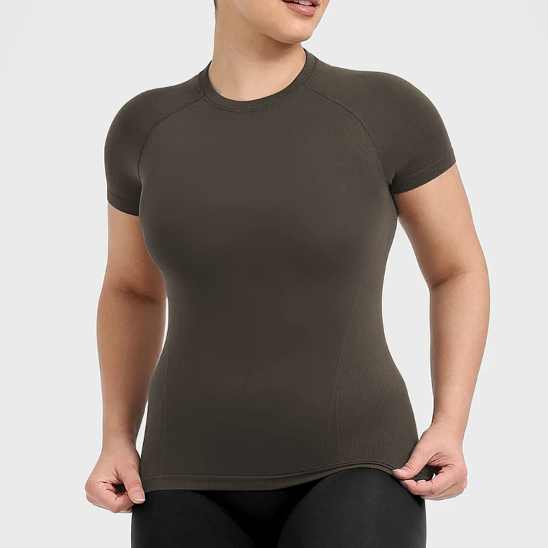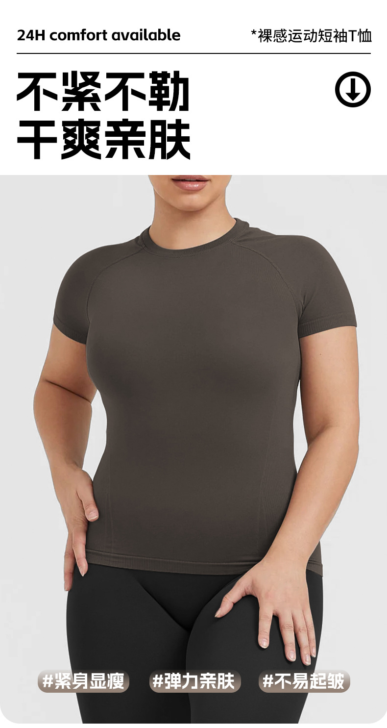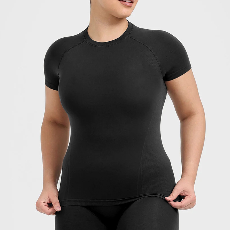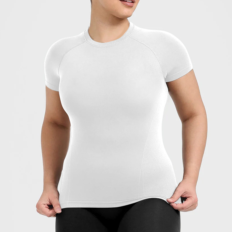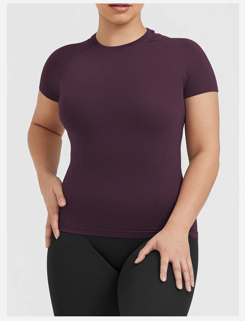여름 지방 mm 고탄력 반팔 티셔츠 원활한 피부 친화적 인 통기성 피트니스 의류 스포츠 캐주얼 요가 의류 여성용 탑스토어 가기