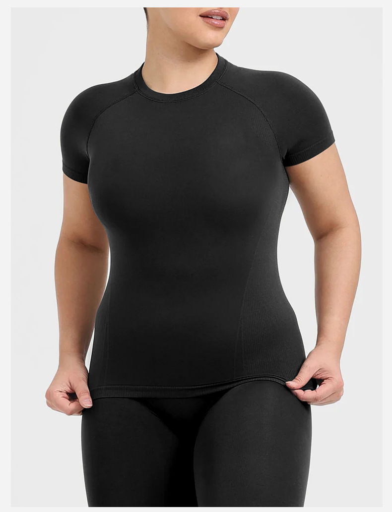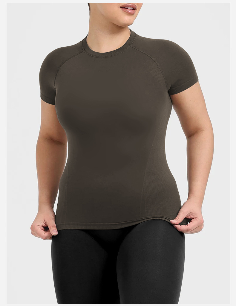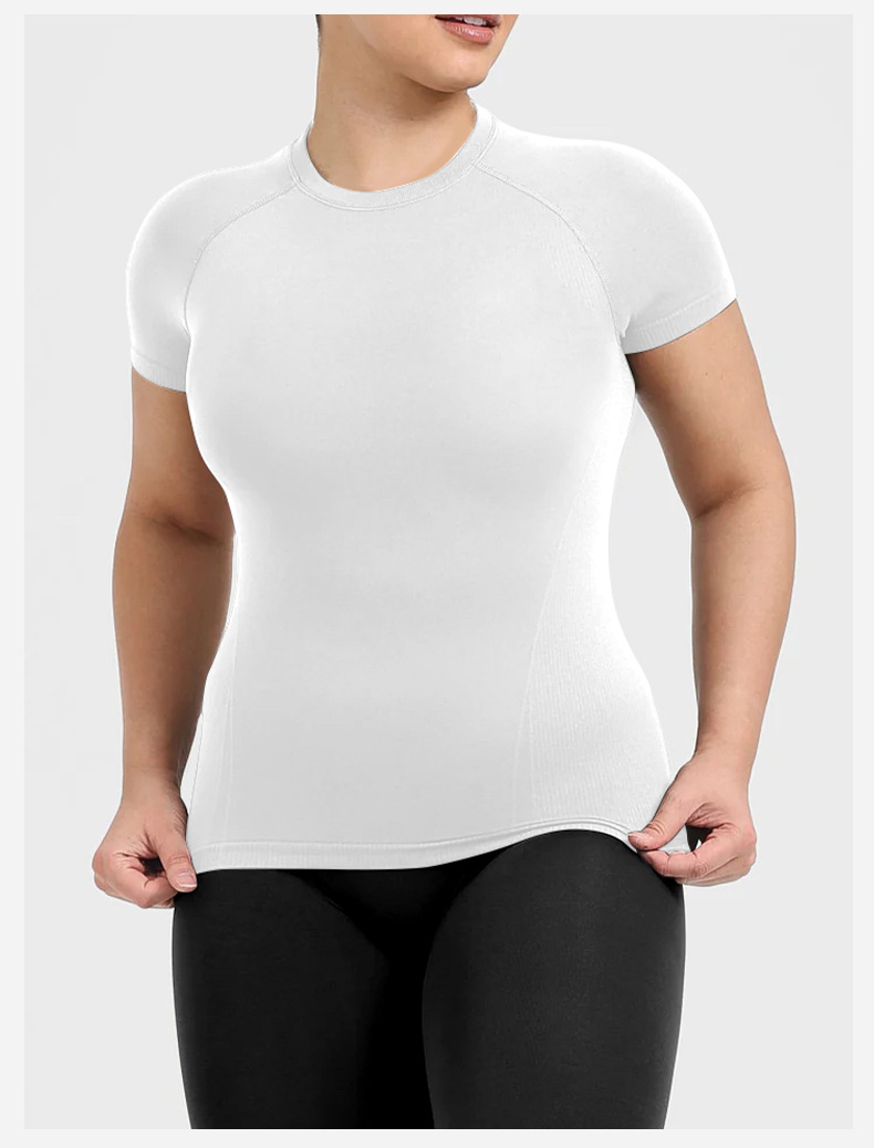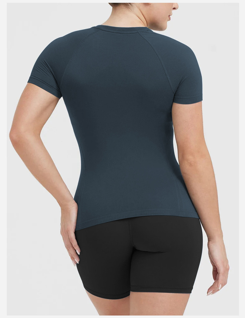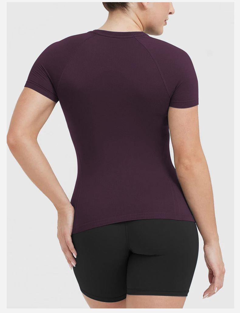 여름 지방 mm 고탄력 반팔 티셔츠 원활한 피부 친화적 인 통기성 피트니스 의류 스포츠 캐주얼 요가 의류 여성용 탑스토어 가기