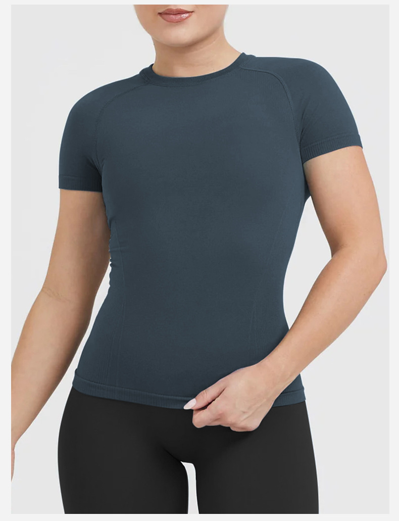 여름 지방 mm 고탄력 반팔 티셔츠 원활한 피부 친화적 인 통기성 피트니스 의류 스포츠 캐주얼 요가 의류 여성용 탑
