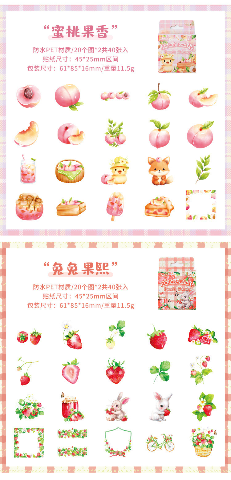 과일 음악 일기 투명 방수 애완 동물 스티커 diy 손 계정 일기 스티커 국경 과일 파이 박스 동물 스티커스토어 가기