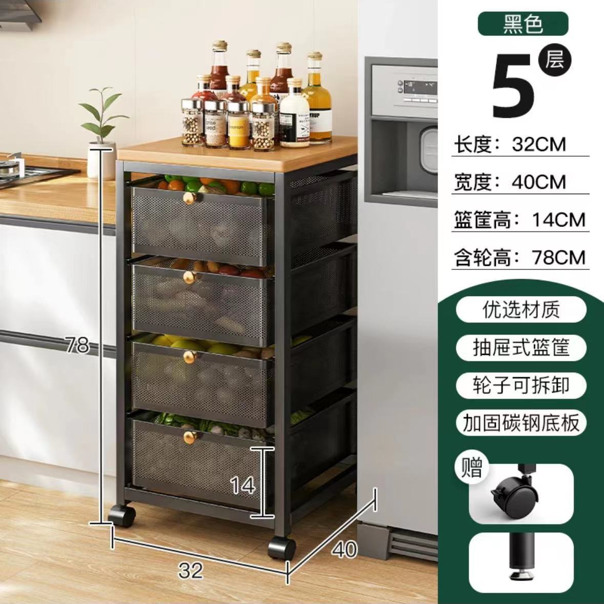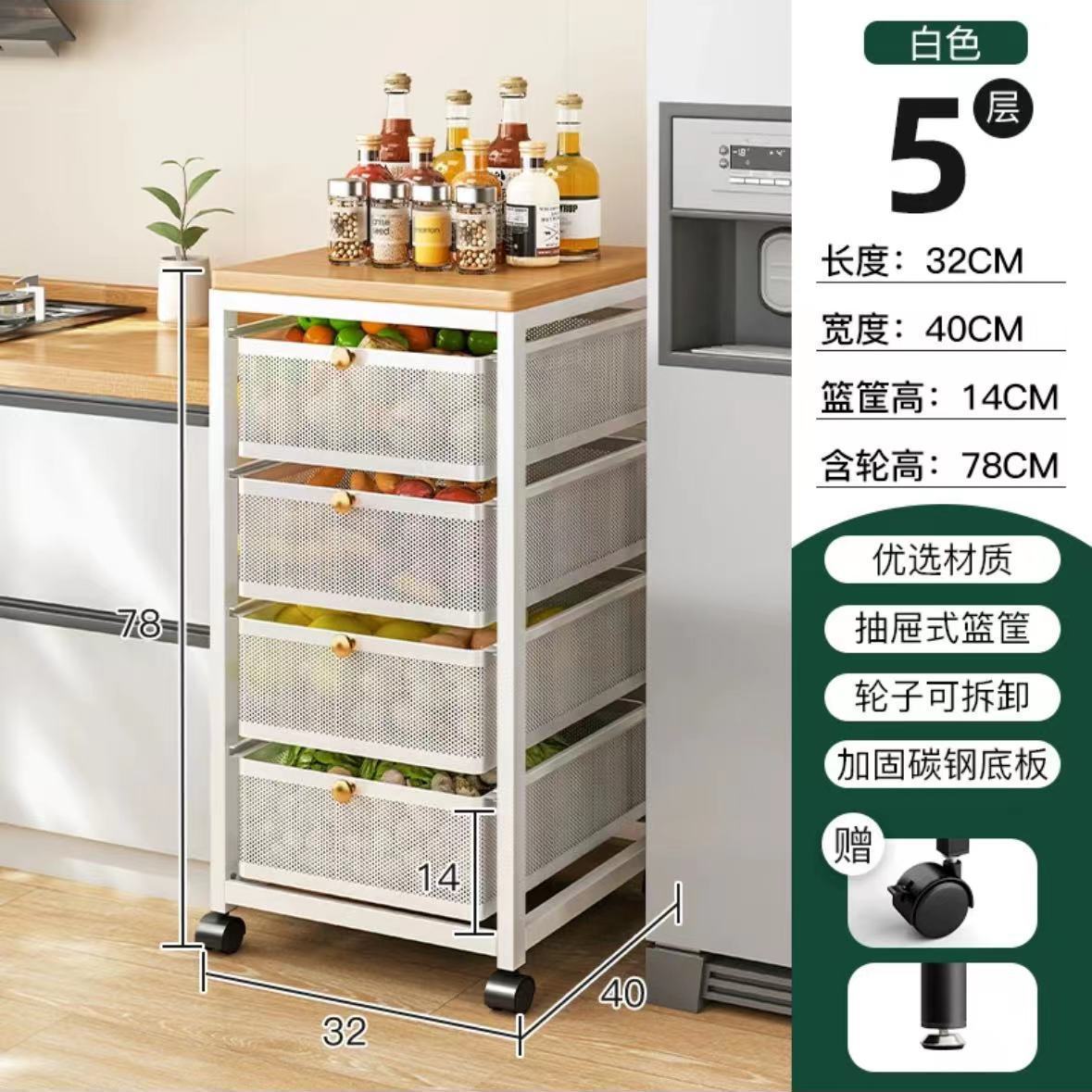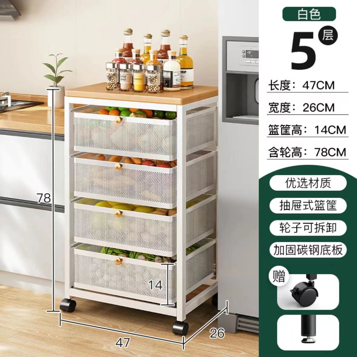 스토리지 랙 서랍 형 주방 저장 야채 바구니 가정용 다기능 플로어 스탠딩 갭 스토리지 캐비닛 다층 간식