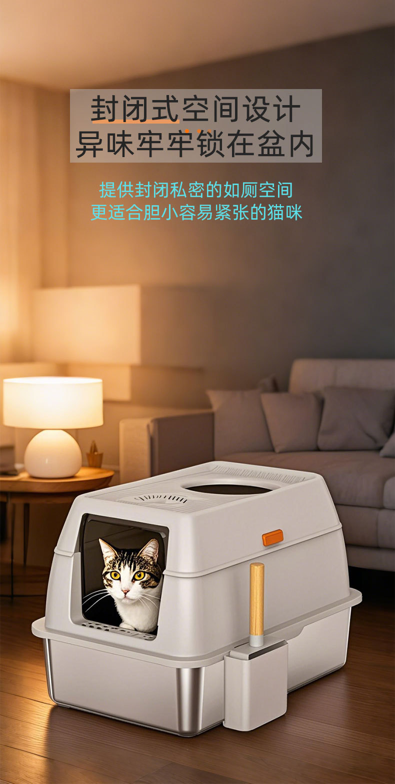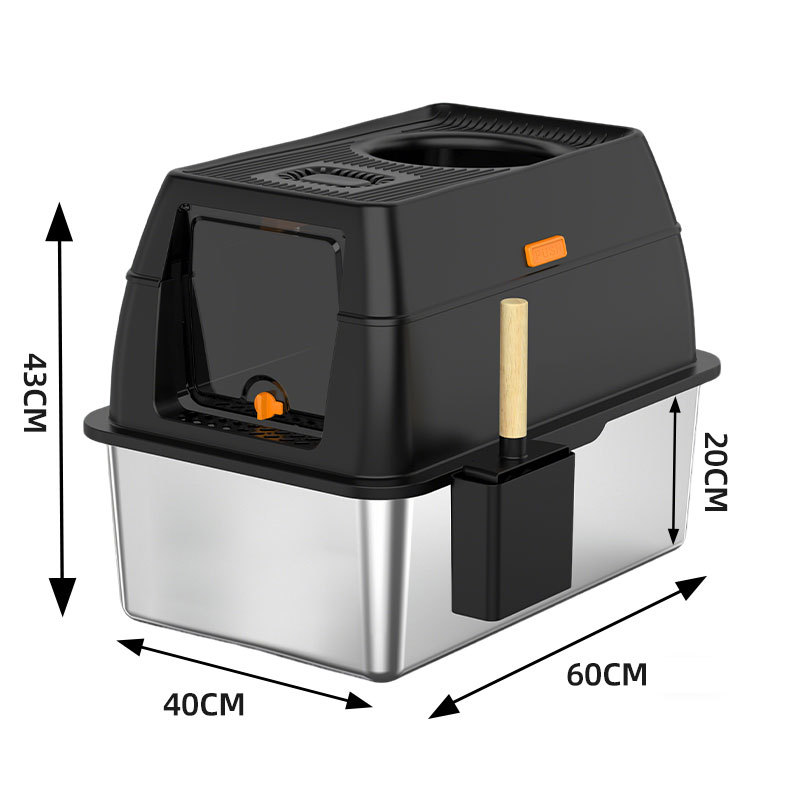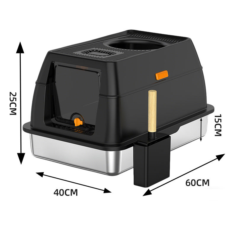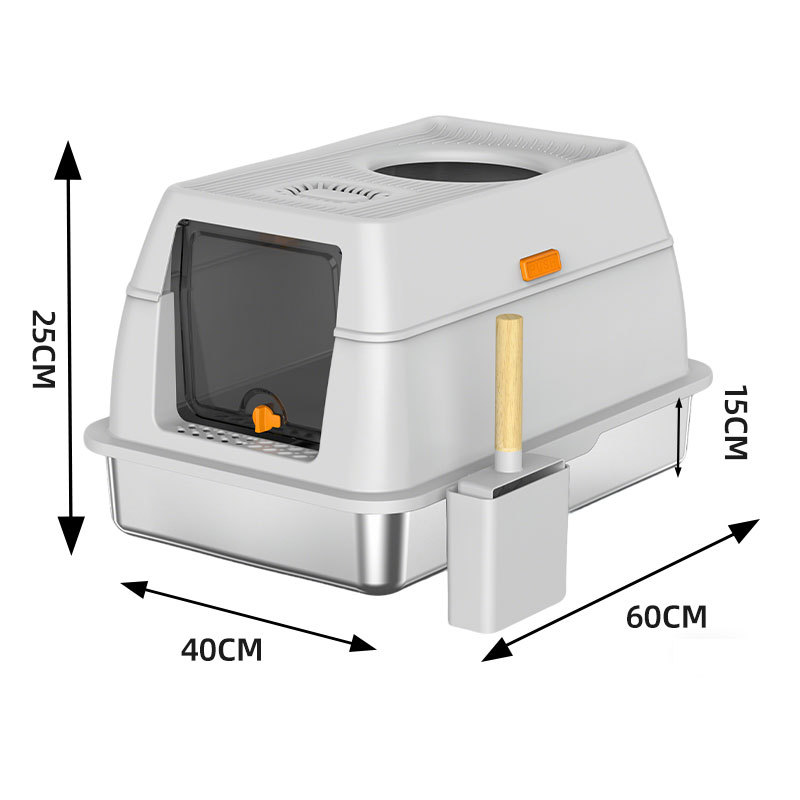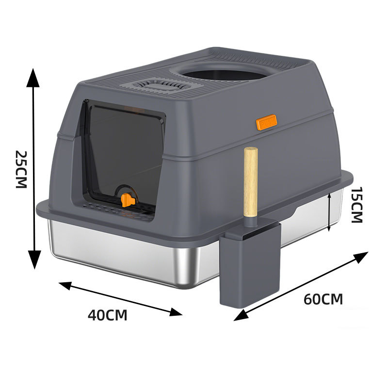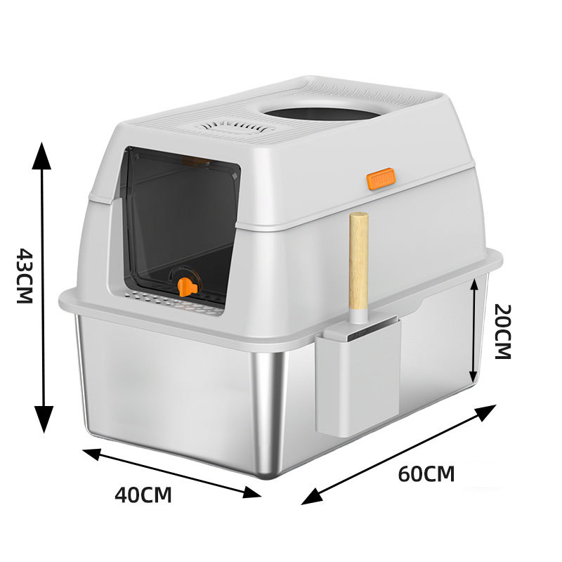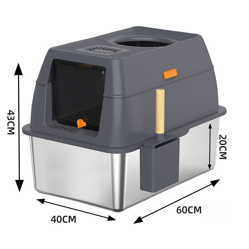밀폐 된 스테인레스 스틸 고양이 쓰레기 분지 대형 고양이 쓰레기 삽 청소, 탈취 방지 및 모래 방지 디자인 고양이 화장실