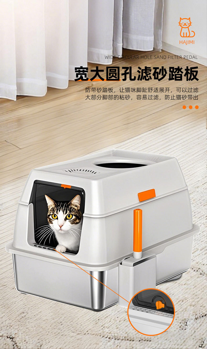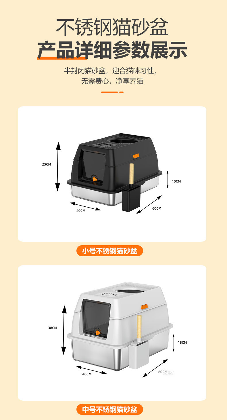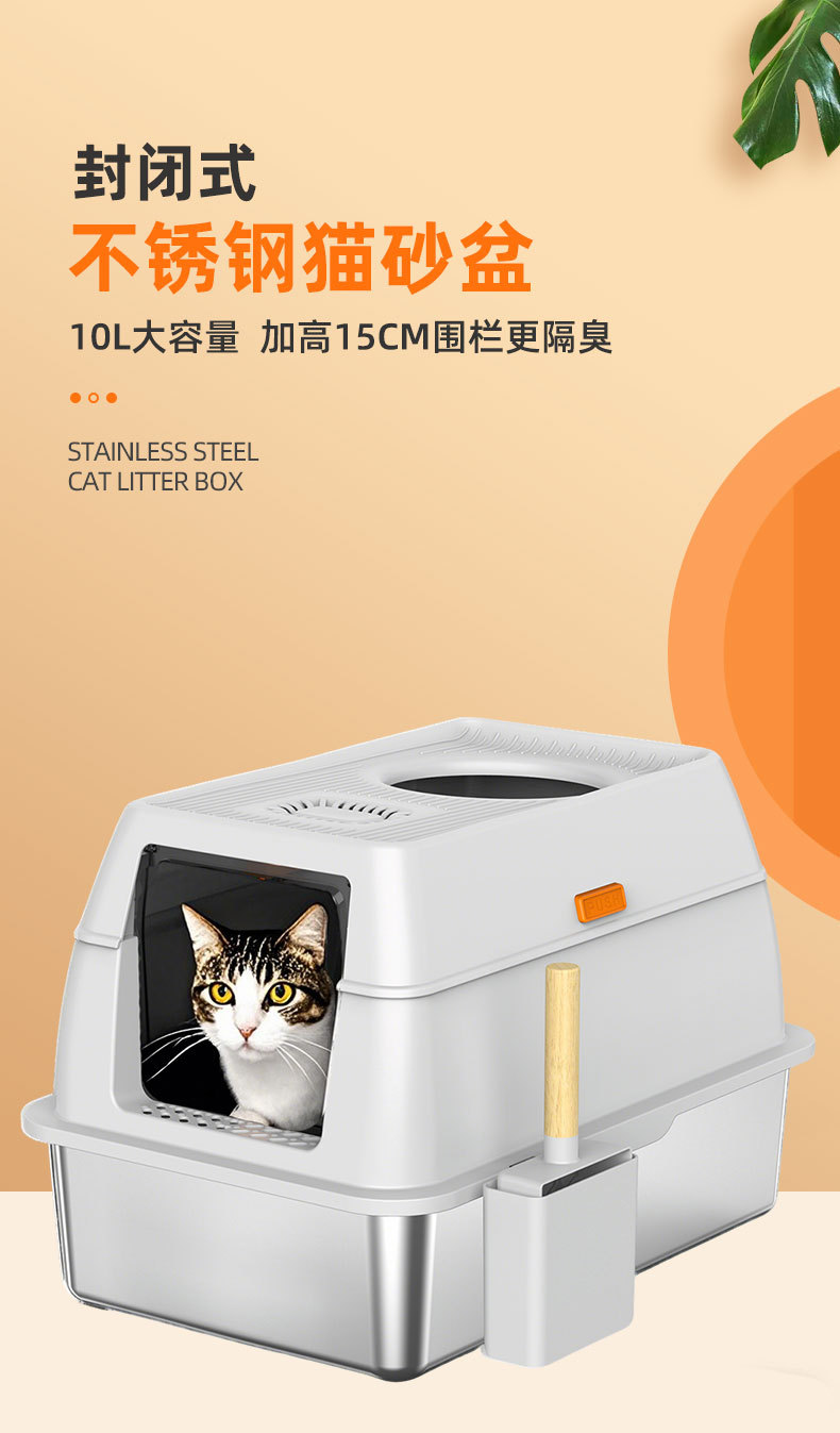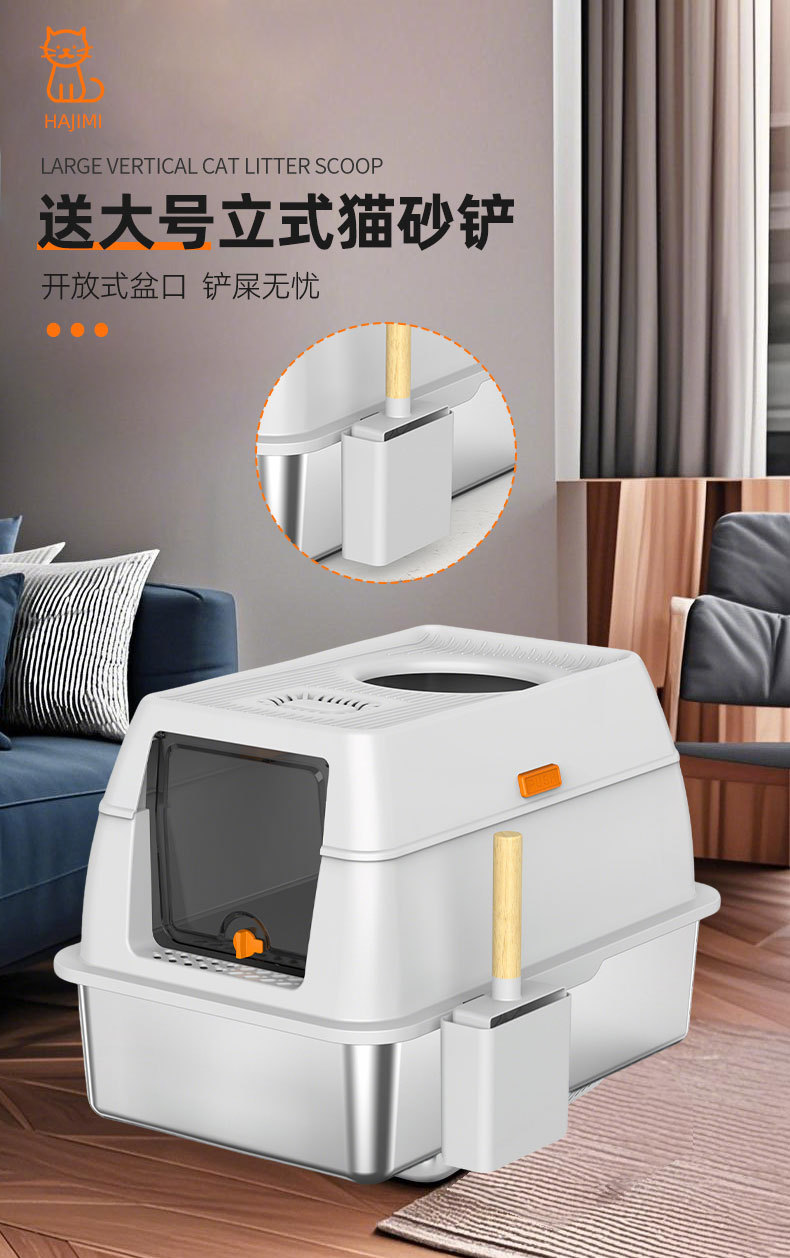 밀폐 된 스테인레스 스틸 고양이 쓰레기 분지 대형 고양이 쓰레기 삽 청소, 탈취 방지 및 모래 방지 디자인 고양이 화장실스토어 가기