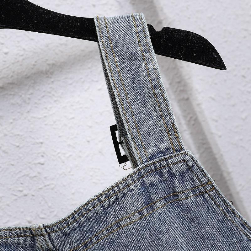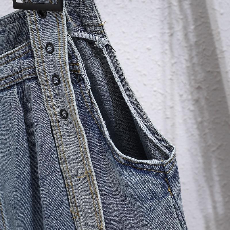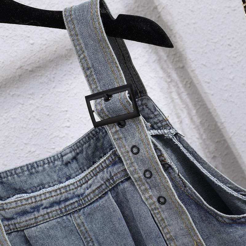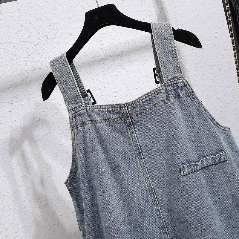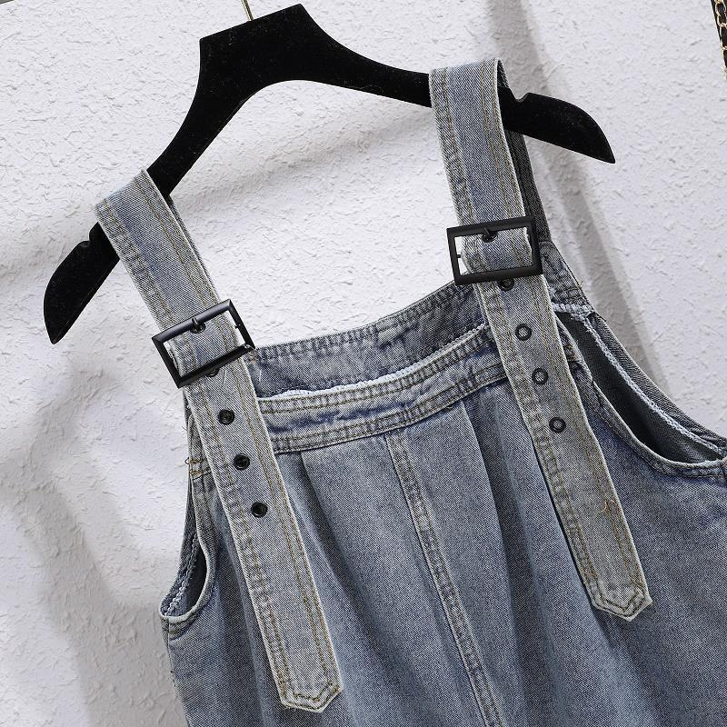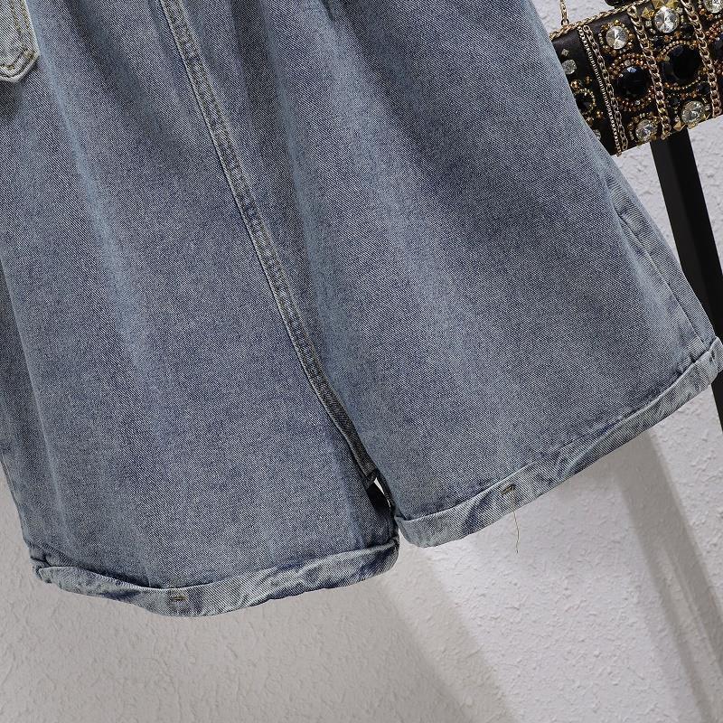 [75000 컬렉션] 데님 스트랩 반바지 여성 조커 여름 2024 새로운 한국식 와이드 레그 바지 얇은