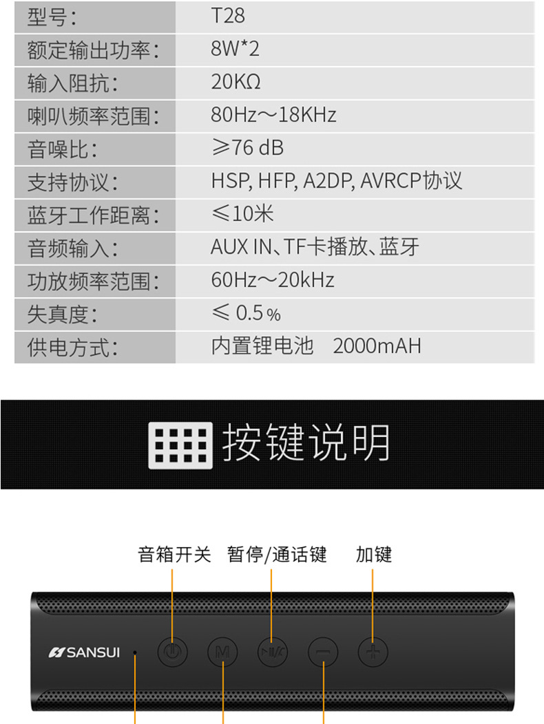 Shanshui T28 무선 블루투스 스피커 오디오 작은 휴대용 홈 서브 우퍼 높은 전원 카드 플레이어