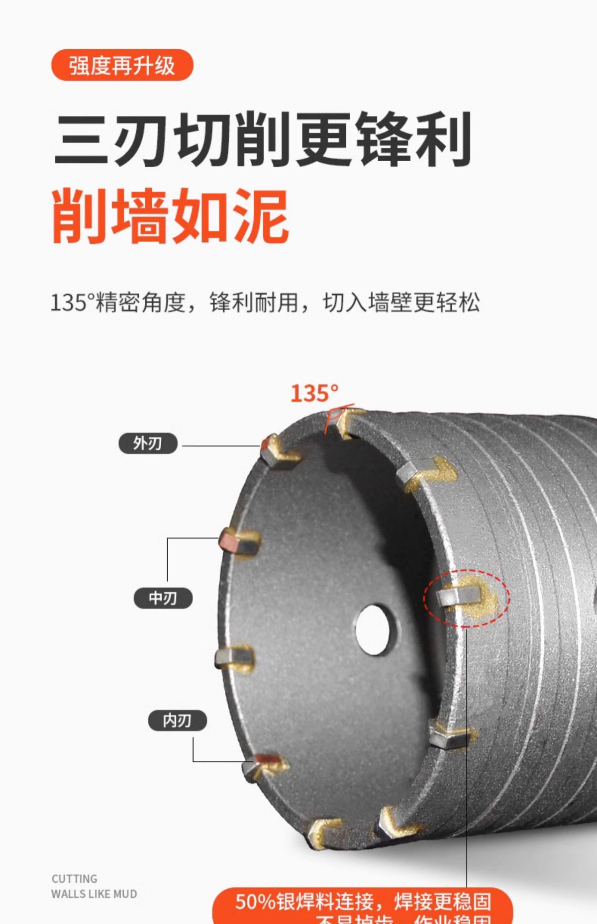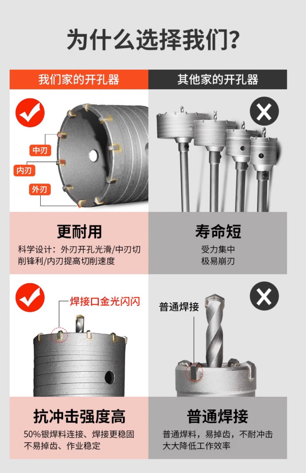 벽 구멍 오프너 드릴 비트 충격 콘크리트 에어컨 파이프 통해 벽 전기 해머 시추 유물 벽돌 벽 구멍 라인 석 드릴 비트