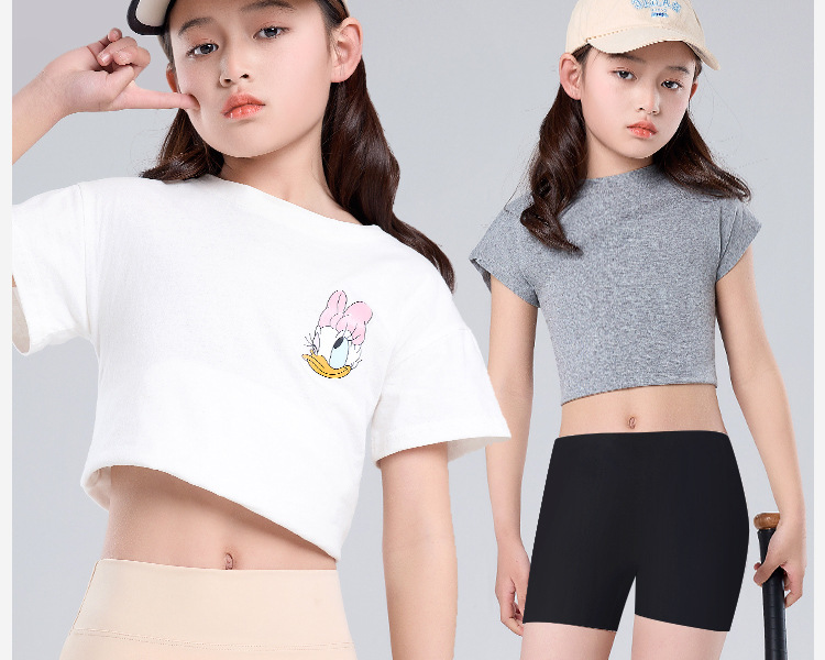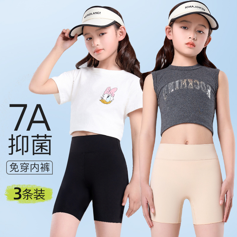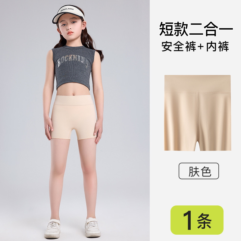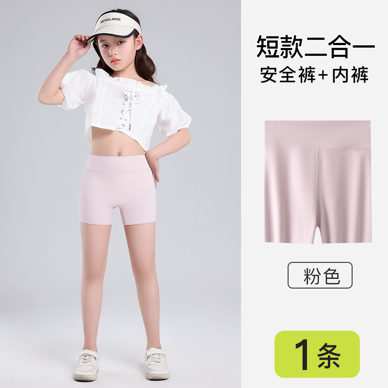 여름 7A 등급 얼음 실크 원활한 아동 의류 레깅스, 가볍고 통기성, 하이 웨이스트, 노출 방지 투인원 아동 안전 바지스토어 가기