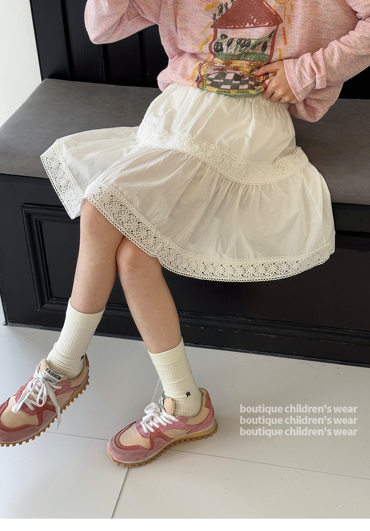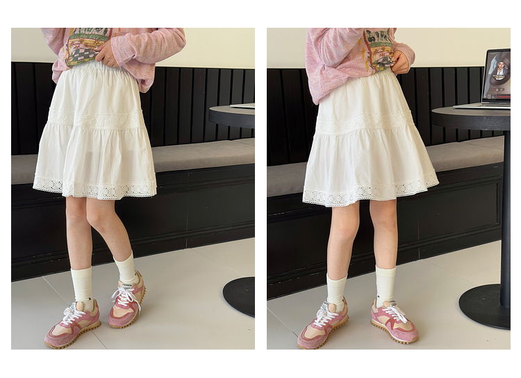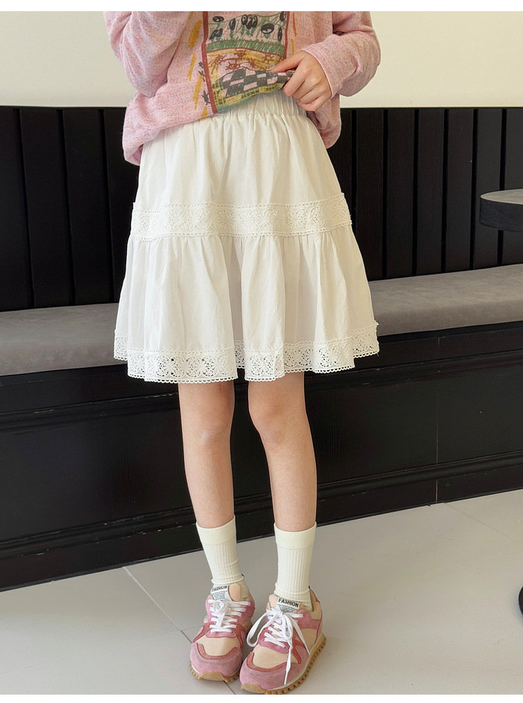 여자 치마 2025 여름 새로운 어린이 서양식 치마 소녀 A 자형 면화 원피스 레이스 바느질 치마