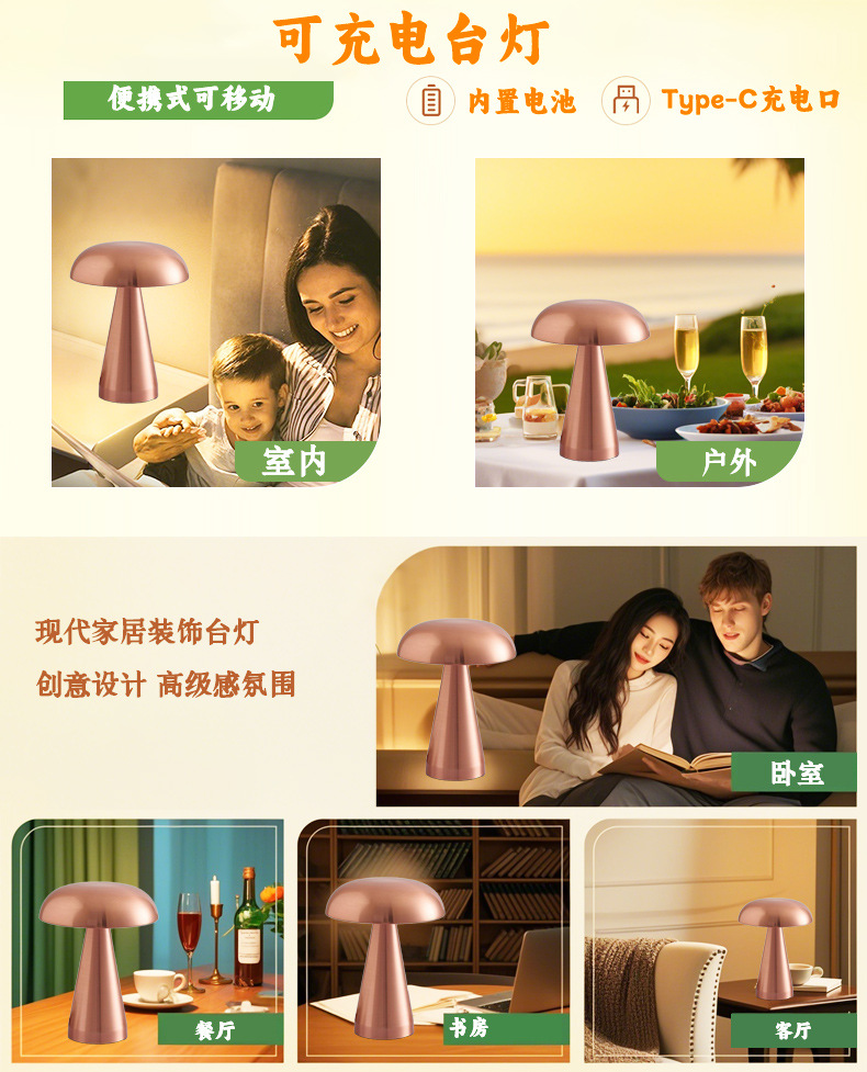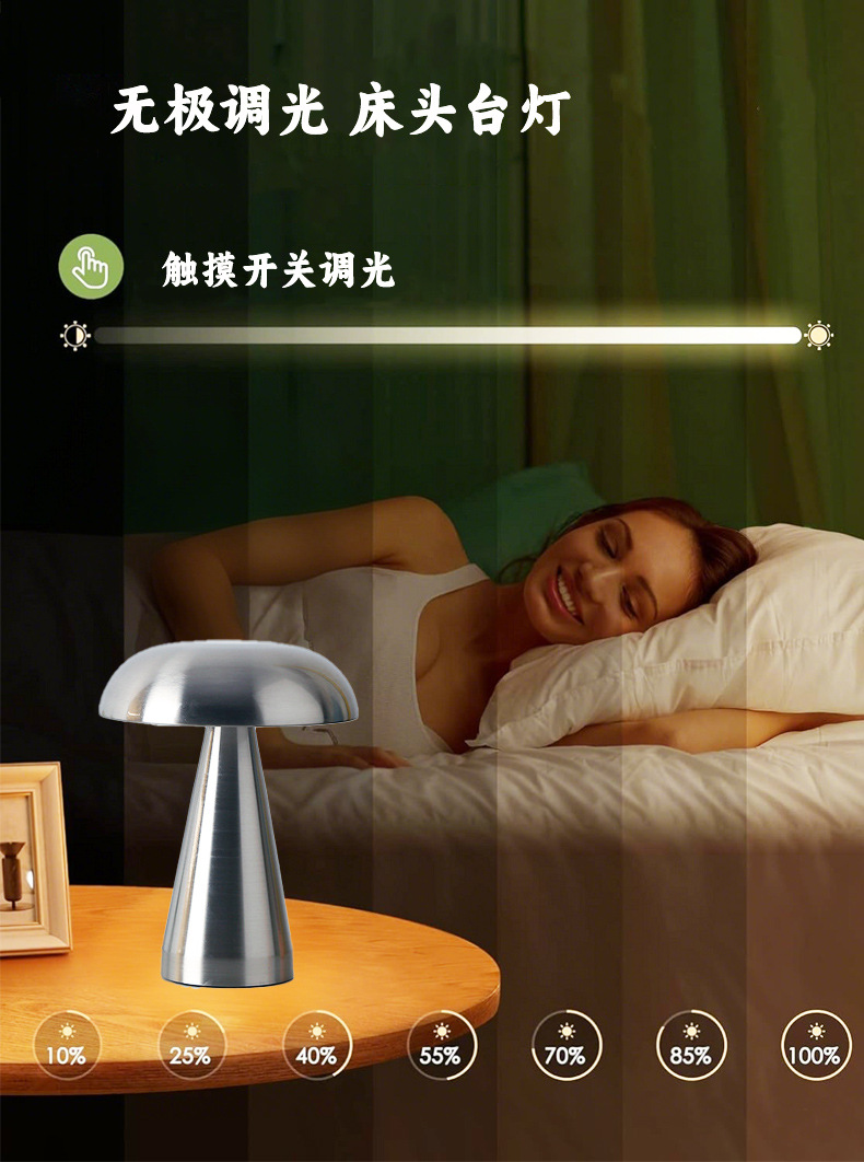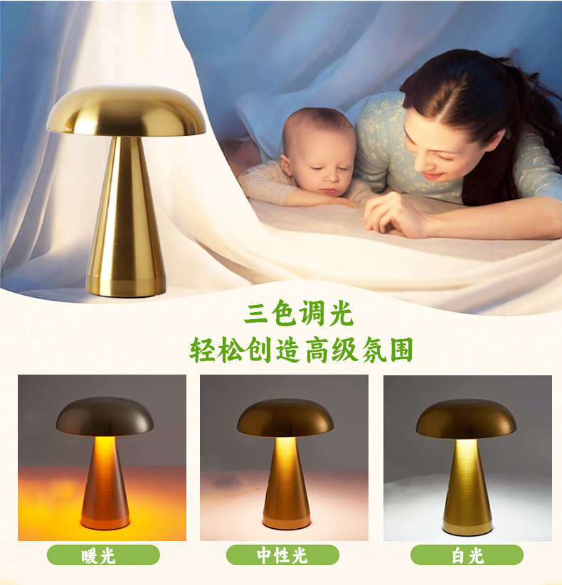 금속 버섯 테이블 램프 아마존 뜨거운 판매 휴대용 야외 레스토랑 캠핑 디밍 터치 분위기 테이블 램프스토어 가기