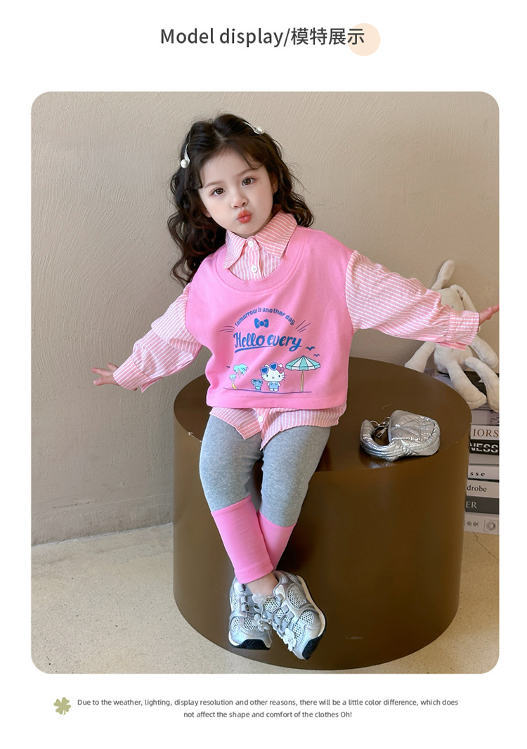 소녀의 가짜 두 조각 옷깃 세트 아기의 세련된 봄과 가을 옷 어린이 서양식 얇은 봄 투피스 유행 세트스토어 가기