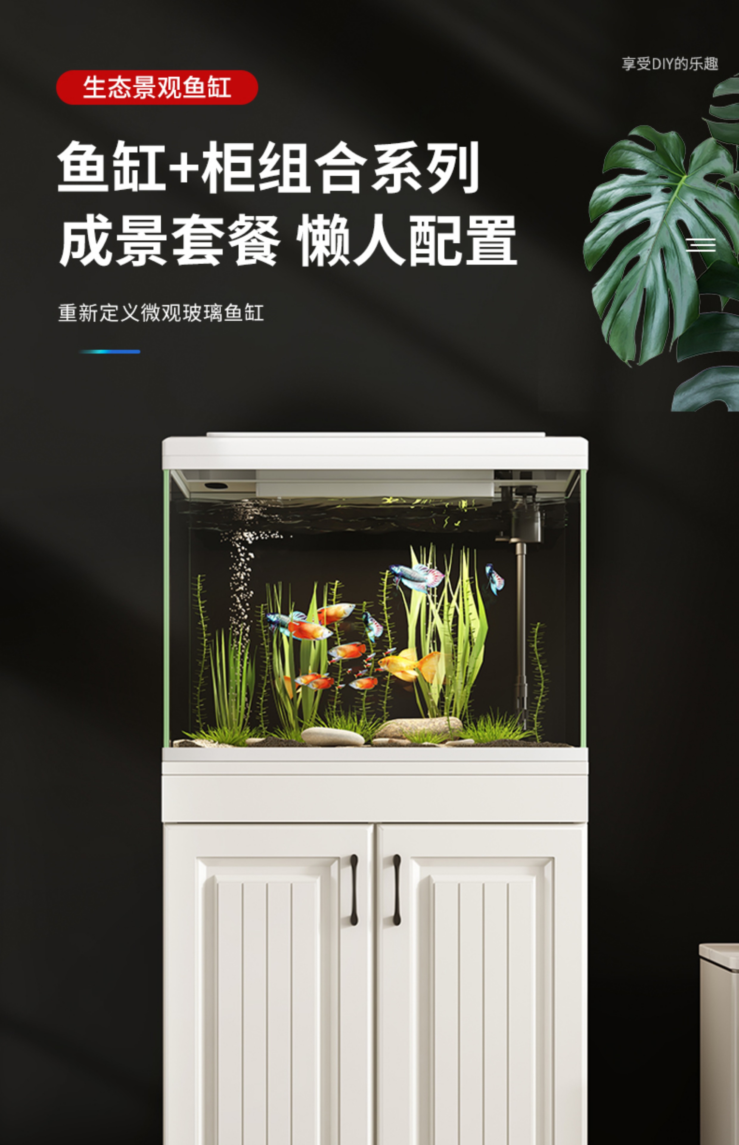 풍경 수직 직각 수족관 중간 층 골드 벨트 새로운 캐비닛 가정용 어항 거실 작은.스토어 가기