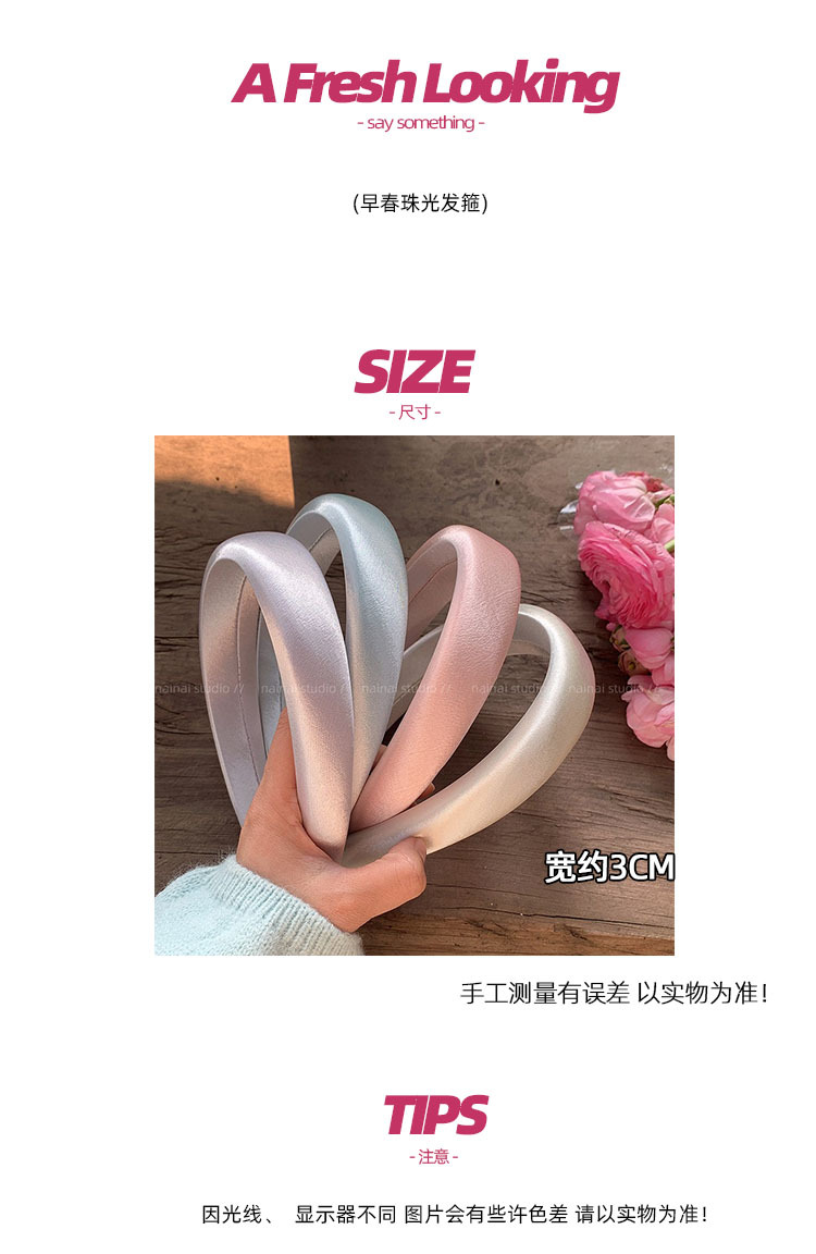 이른 봄 진주 향기 머리띠 ~ 고급 감각 2025 새로운 높은 두개골 탑 와이드 에지 컬러 신선한 소녀 심장 머리띠 조수