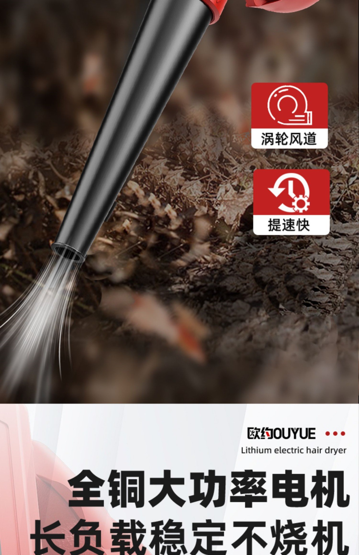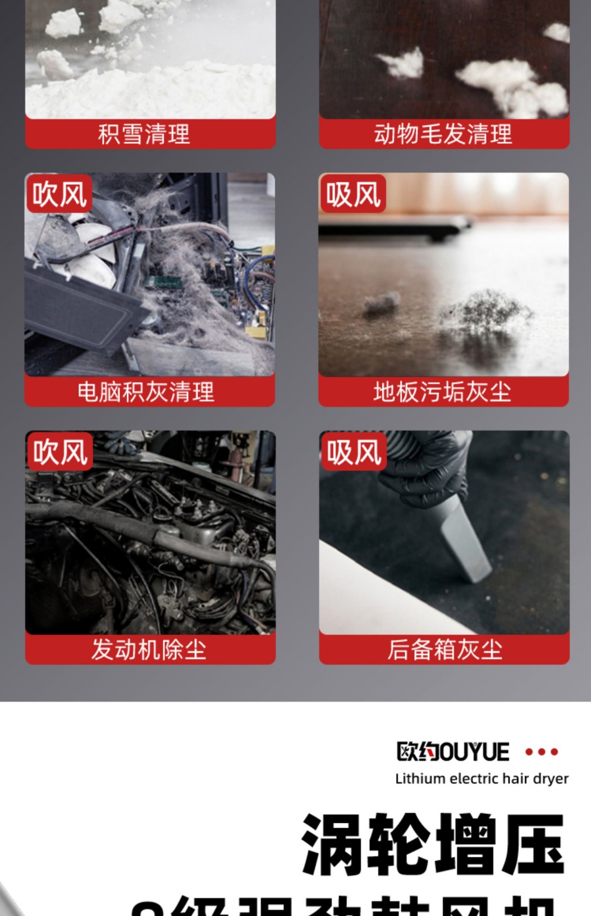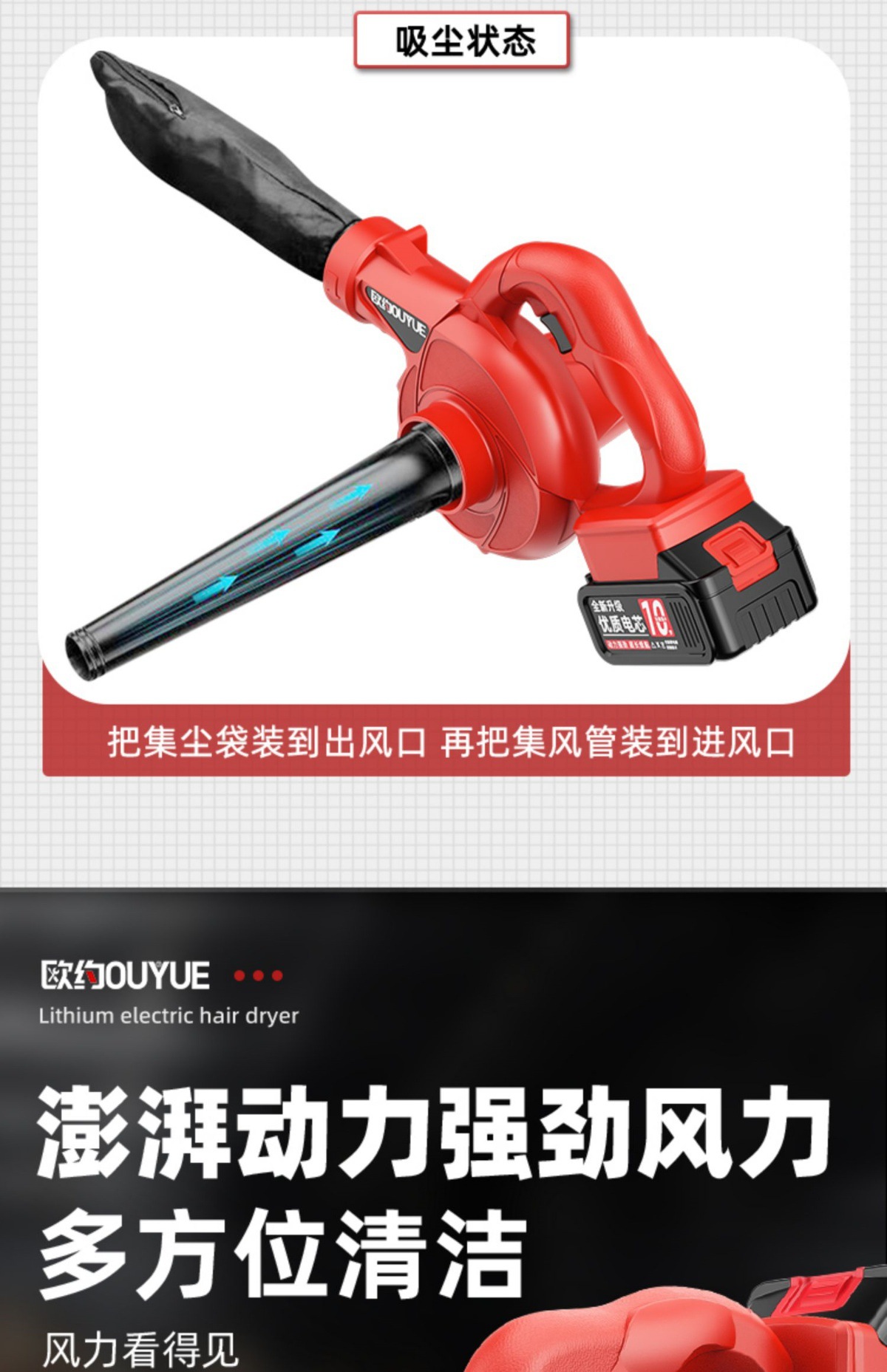 Ouyo 고출력 산업용 리튬 충전식 헤어 드라이어 송풍기 작은 그을음 송풍기 차량 가정용 집진기