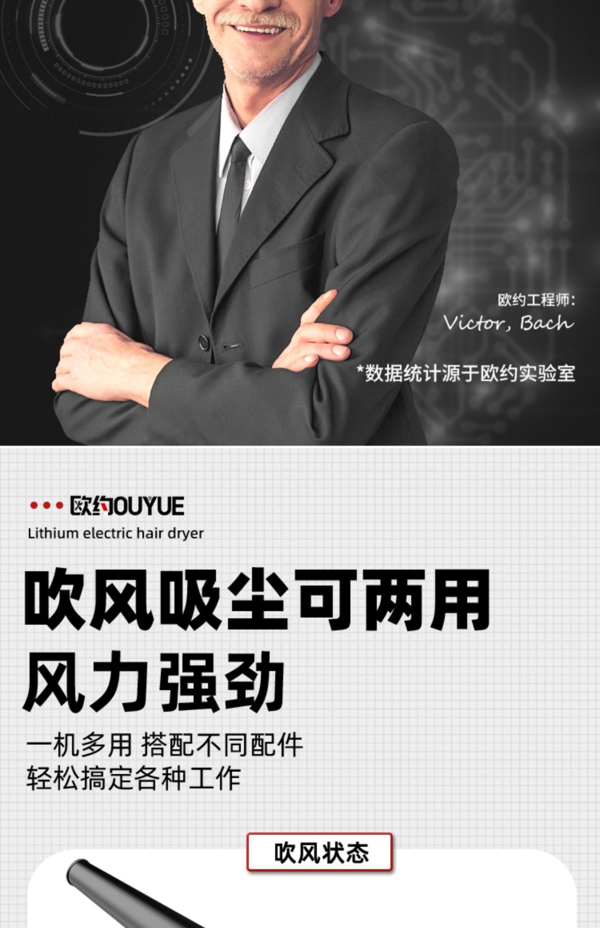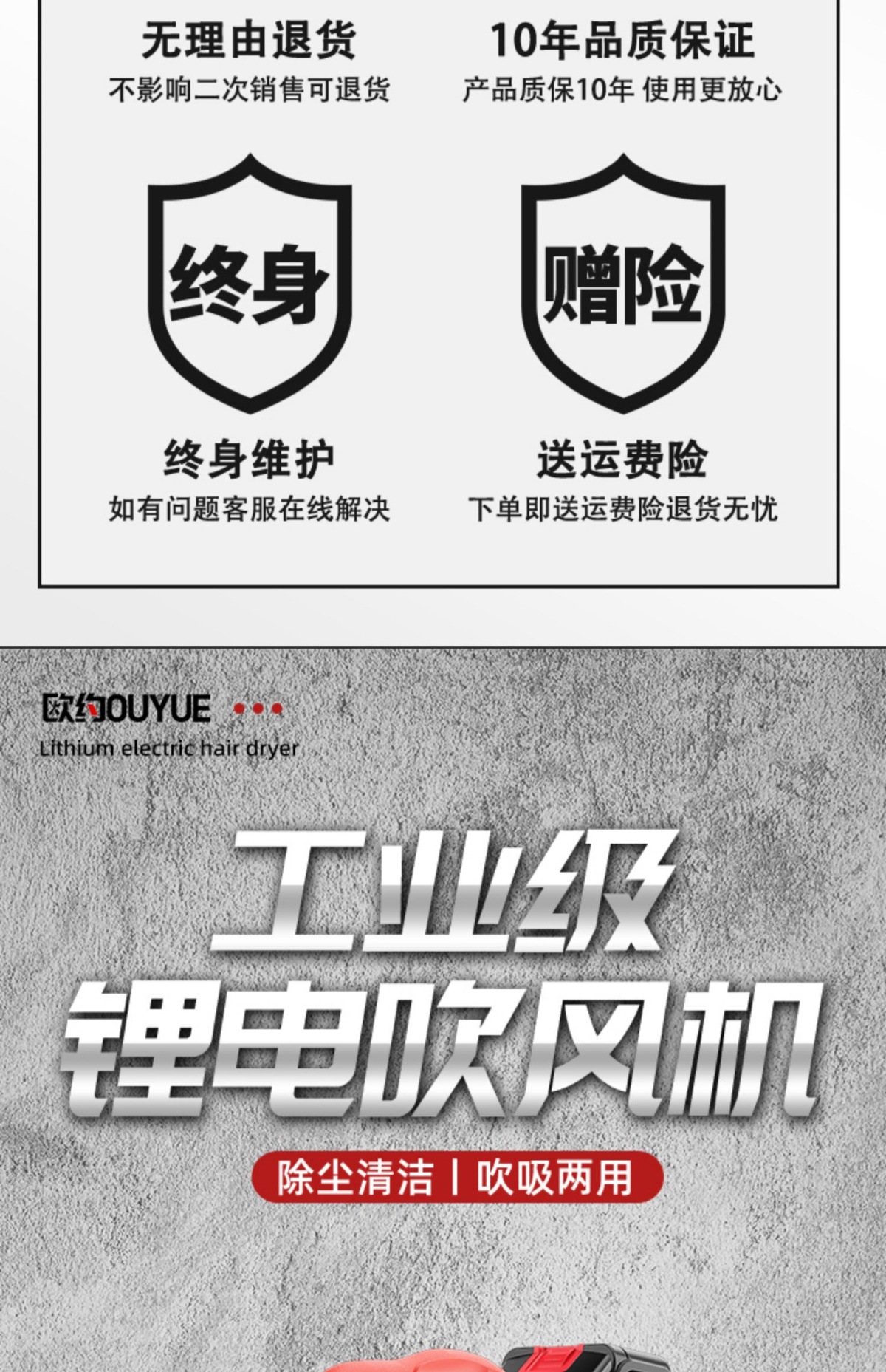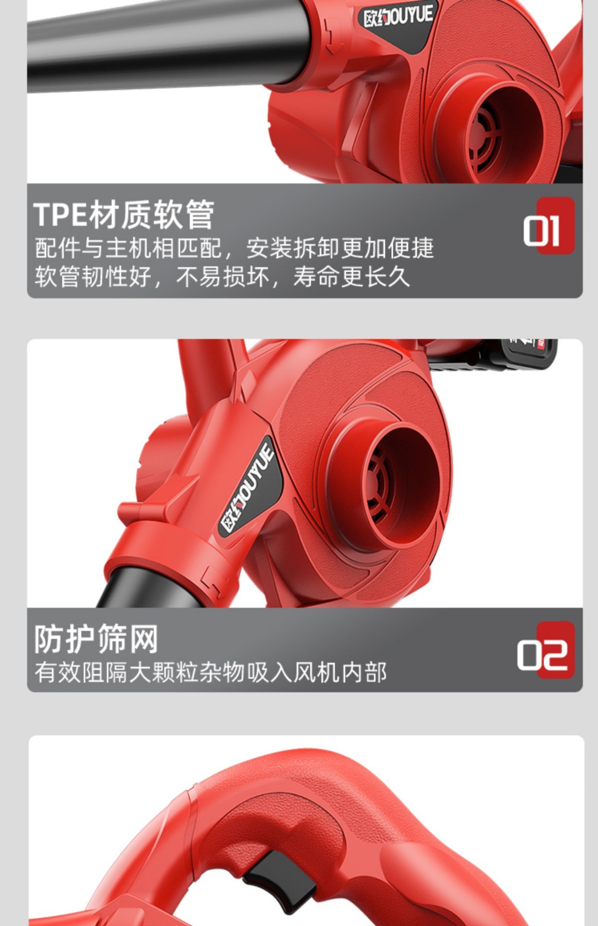 Ouyo 고출력 산업용 리튬 충전식 헤어 드라이어 송풍기 작은 그을음 송풍기 차량 가정용 집진기