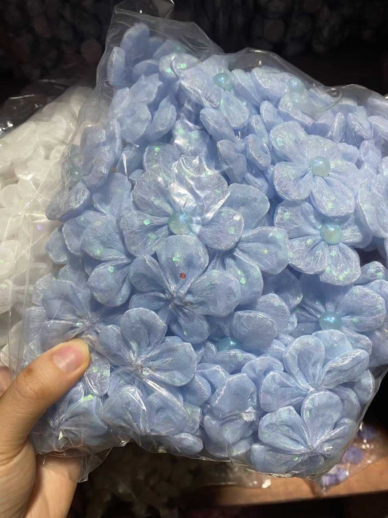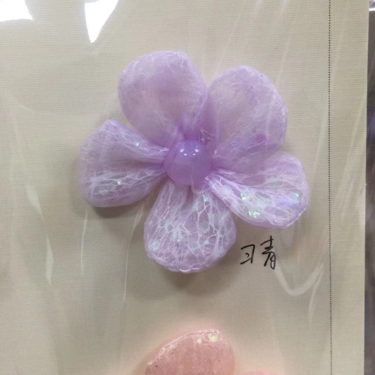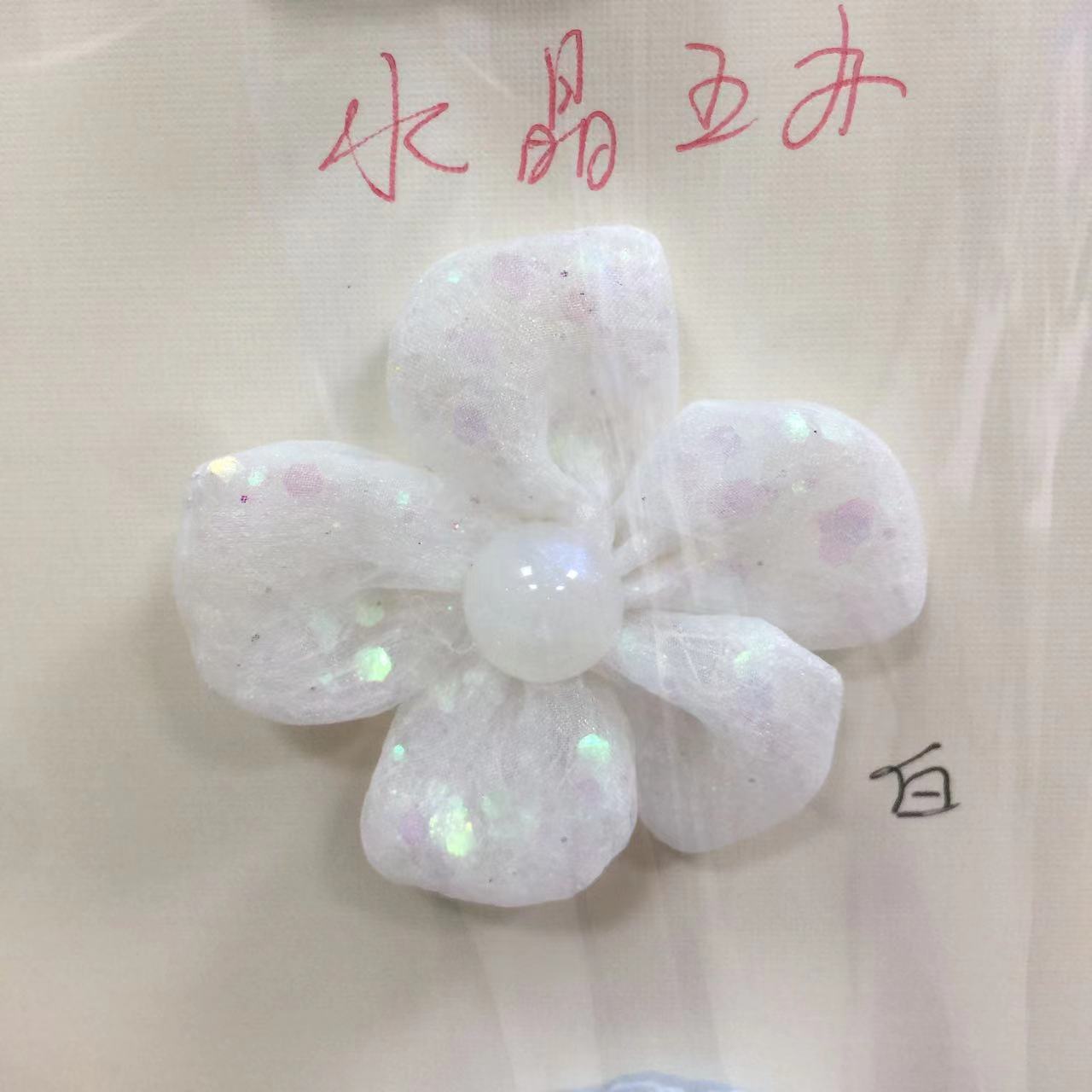 DIY 수제 패브릭 꽃 장식 메쉬 거즈 꽃 어린이 의류 액세서리 헤어 액세서리 크리스탈 5 꽃잎스토어 가기
