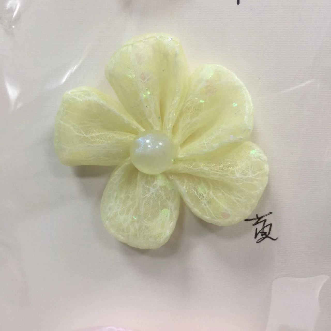 DIY 수제 패브릭 꽃 장식 메쉬 거즈 꽃 어린이 의류 액세서리 헤어 액세서리 크리스탈 5 꽃잎