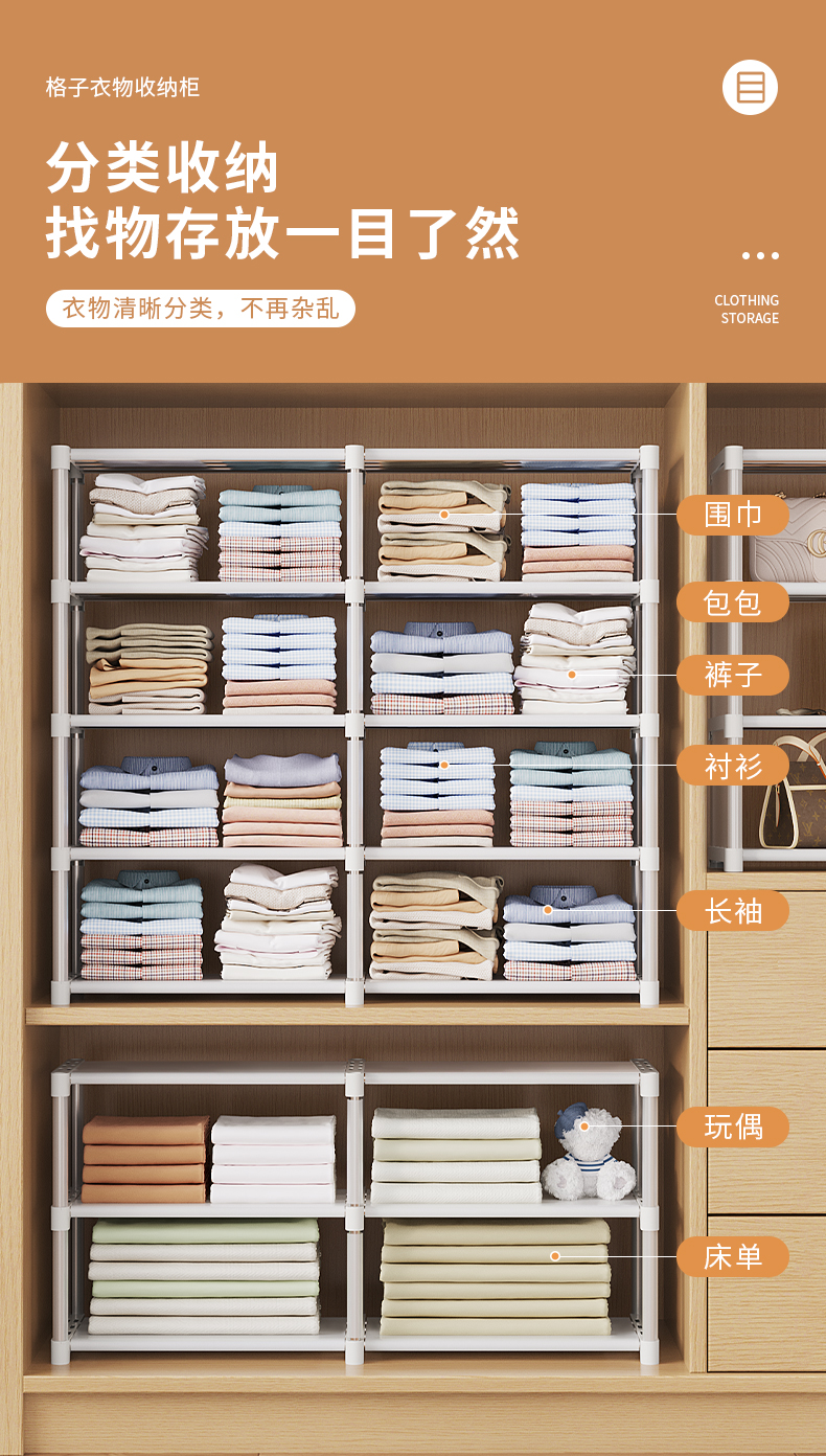 옷장 계층화 된 파티션 파티션 다층 저장 랙 캐비닛 파티션 스토리지 랙 U 자형 격자 선반