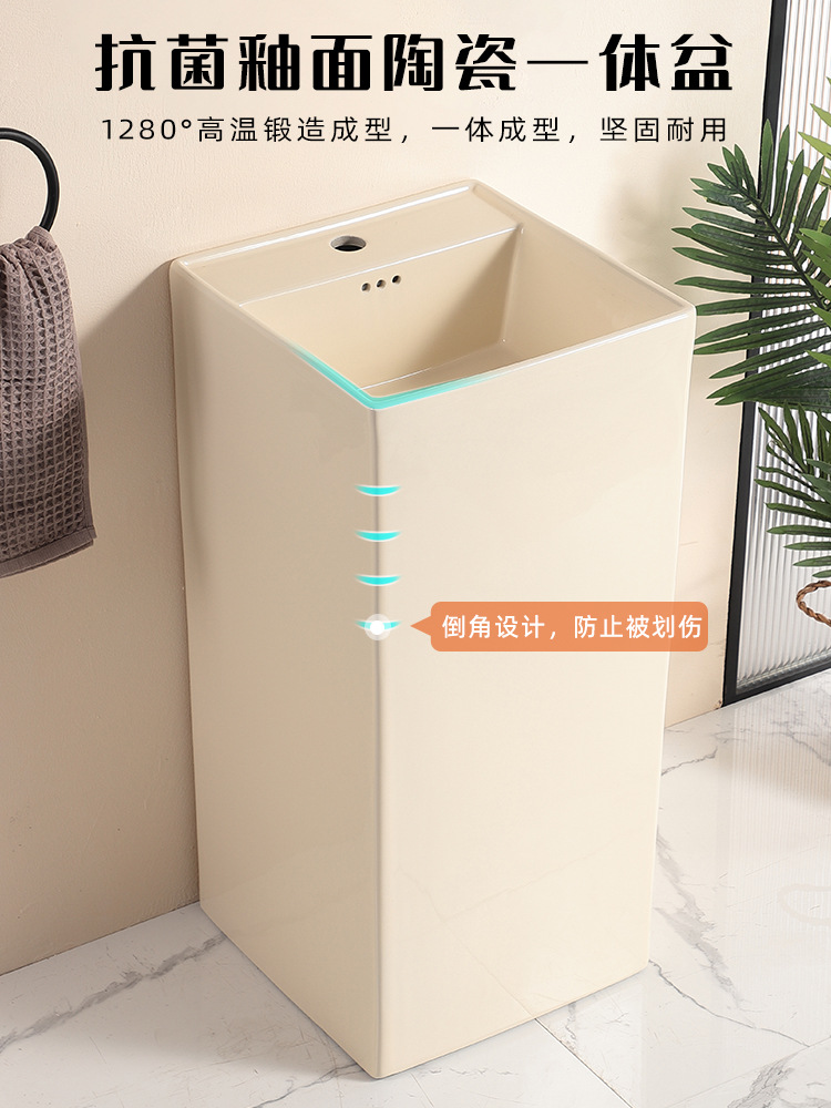 T 통합 플로어 스탠딩 칼럼 분지 크림 스타일 세라믹 야외 화장실 창조적 인 워시-분지 욕실 세척 외부 법원스토어 가기