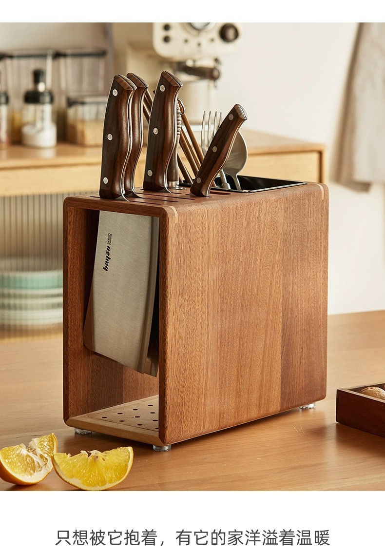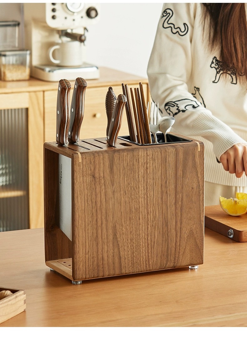 ✅단단한 나무 칼 홀더 저장 랙 젓가락 홀더 젓가락 케이지 통합 가정용 주방 칼 홀더 칼 저장 랙 카운터 탑 주방 칼