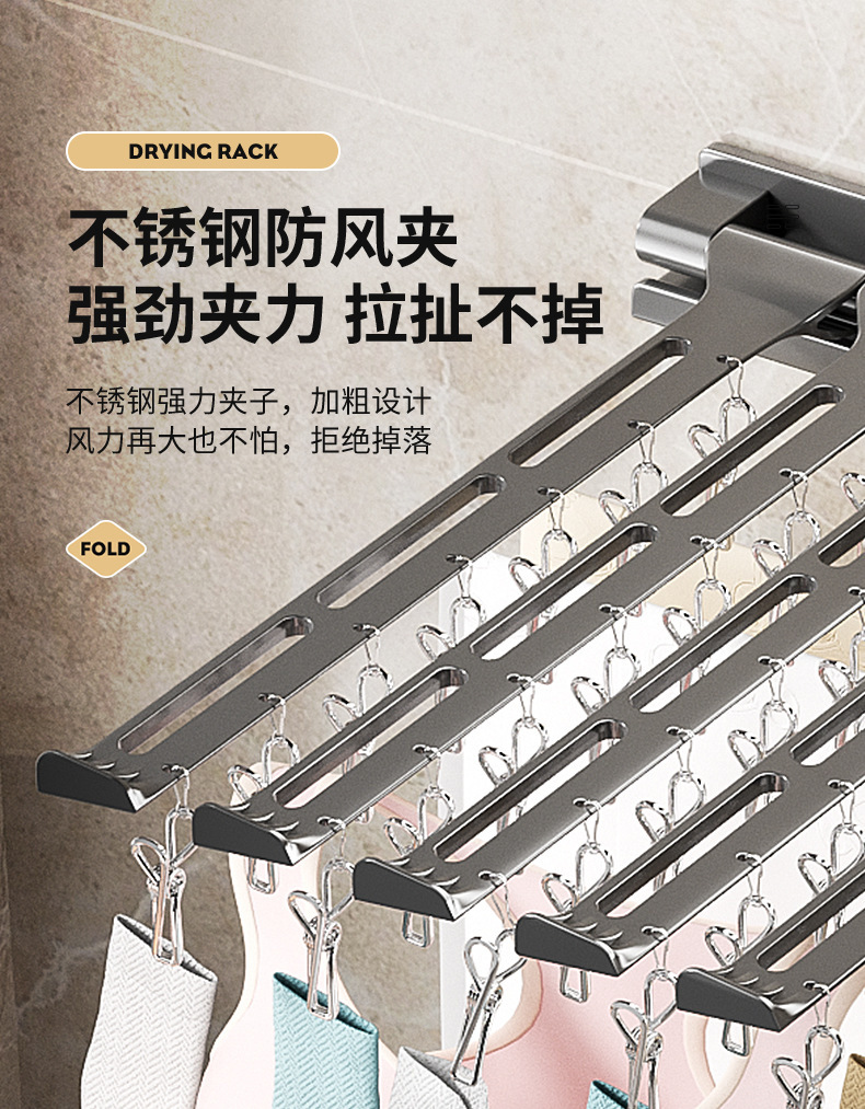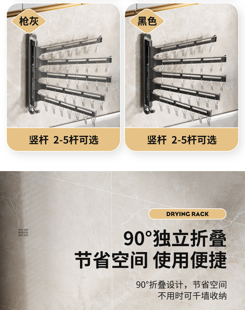 소스 공장 접이식 건조 랙 발코니 벽걸이 형 펀치없는 막대 욕실 벽 회전 속옷 양말 랙