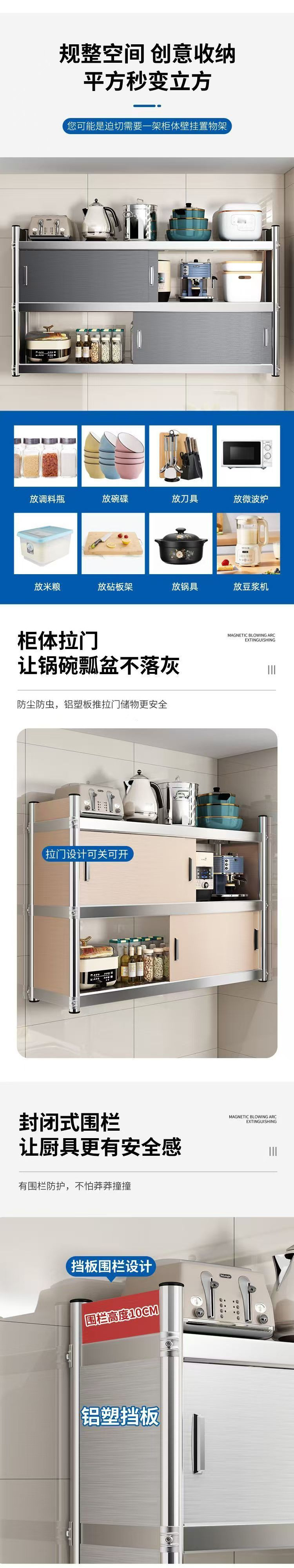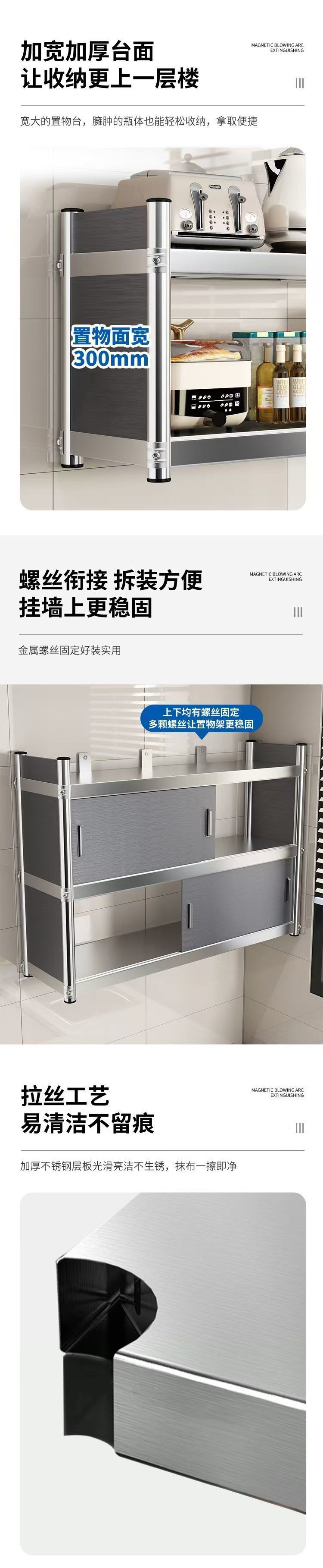 스테인레스 스틸 주방 캐비닛 선반 벽걸이 형 전자 레인지 벽 벽 벽 저장 다기능 보관 캐비닛스토어 가기