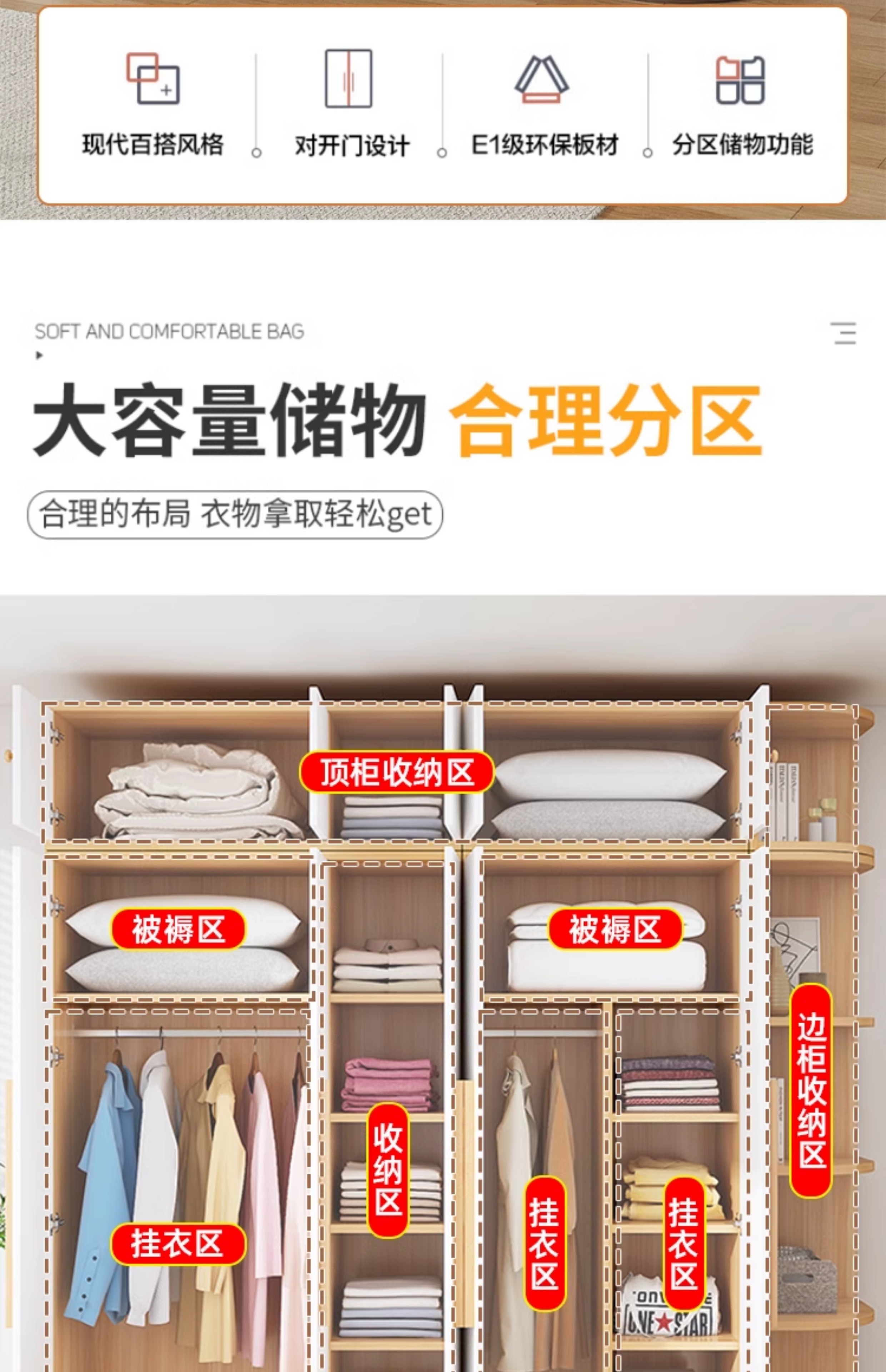 • 【양문형】 신형 80*50*180 라이트 월넛 + 따뜻한 화이트♢☆