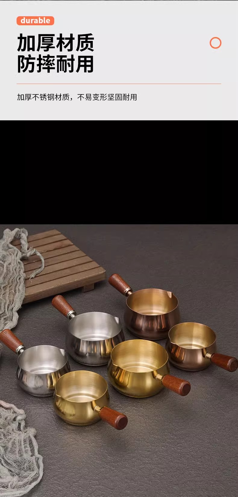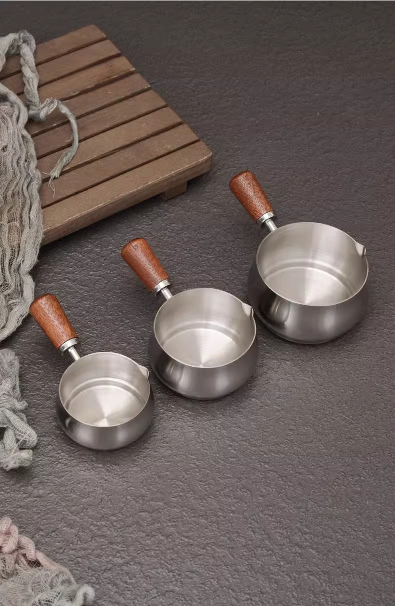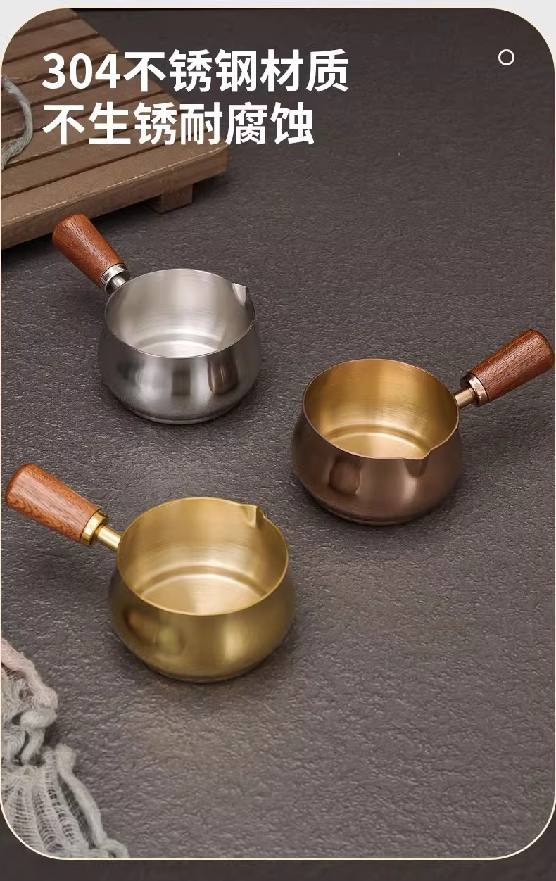 304 스테인레스 스틸 소스 컵 스테이크 소스 컵 나무 손잡이 미국 서양식 소스 컵 토마토 샐러드 담그기 소스 플레이트