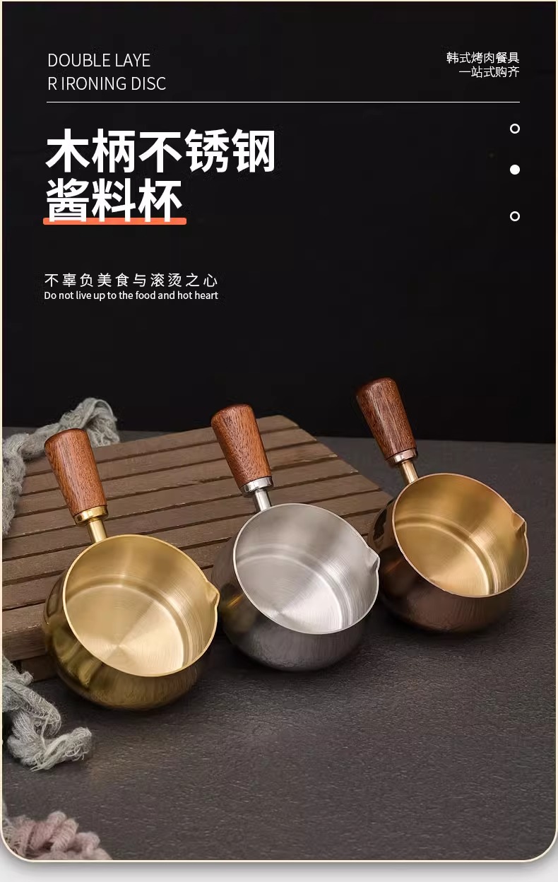 304 스테인레스 스틸 소스 컵 스테이크 소스 컵 나무 손잡이 미국 서양식 소스 컵 토마토 샐러드 담그기 소스 플레이트스토어 가기