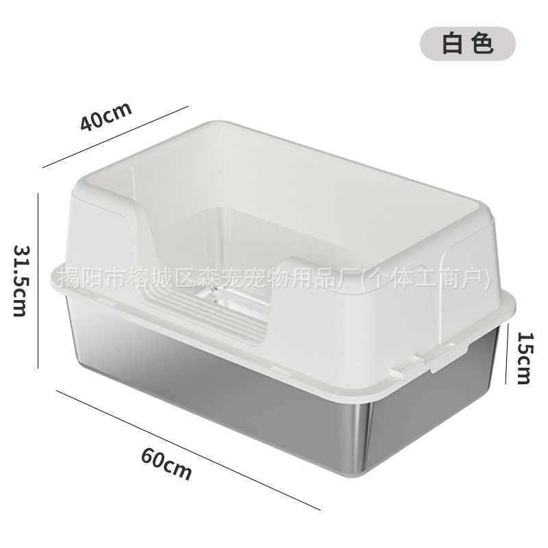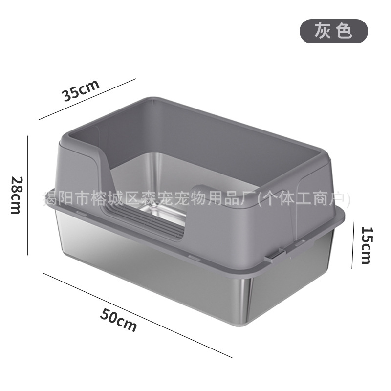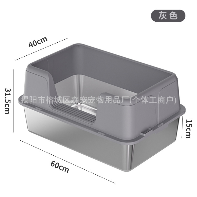 스테인레스 스틸 쓰레기 상자 대형 높은 울타리 반 폐쇄 고양이 화장실 오픈 스플래시 쓰레기 상자 도매