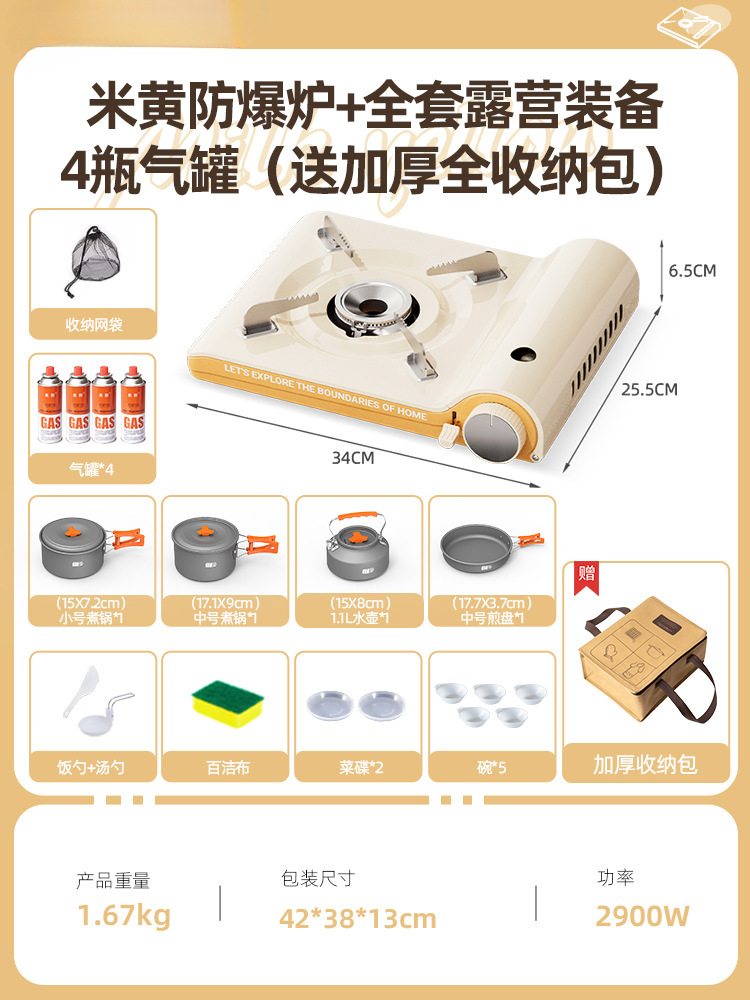 • 베이지 방폭 스토브 + 캠핑 장비 풀 세트 + 가스 탱크 4개(전체 보관 가방 포함)