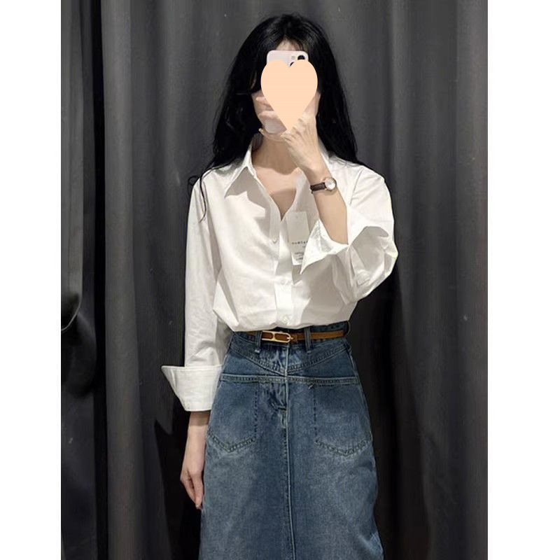 봄 프랑스 간단한 하이 엔드 화이트 셔츠 긴팔 유행 전문 통근 간단한 기본 셔츠 탑스토어 가기
