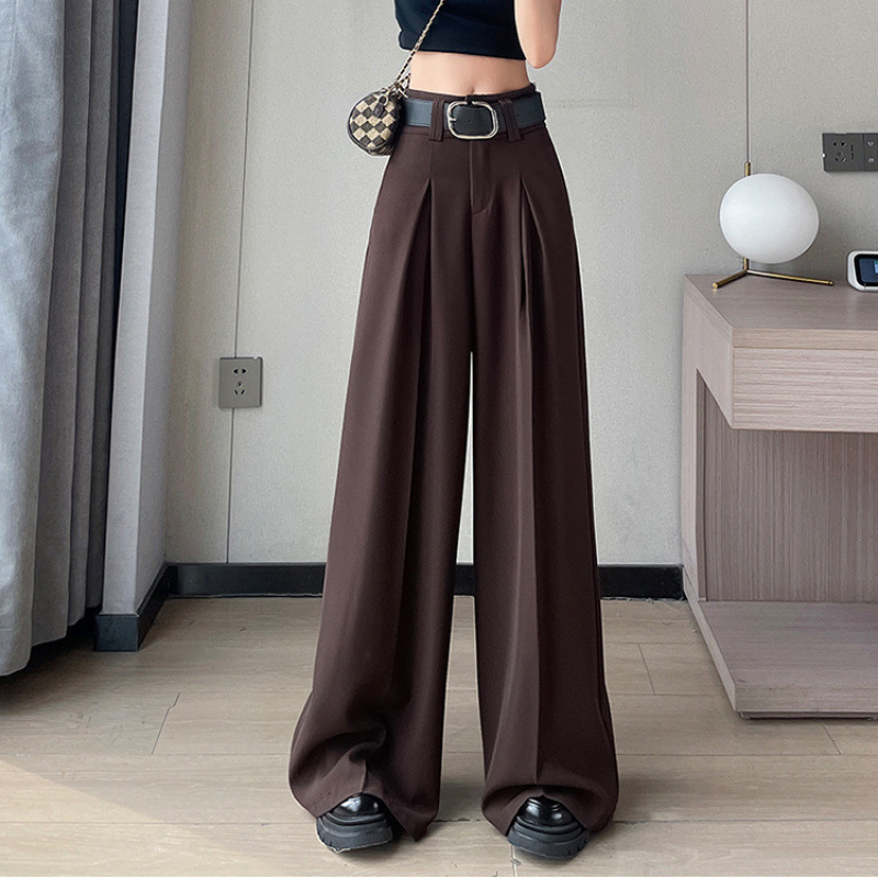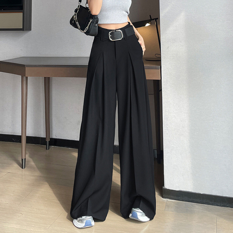 세트 넓은 다리 바지 여성 봄과 여름 벨트 투약 슬리밍 높은 허리 좁은 버전 스트레이트 다리 큰 발 바지 한국 스타일스토어 가기