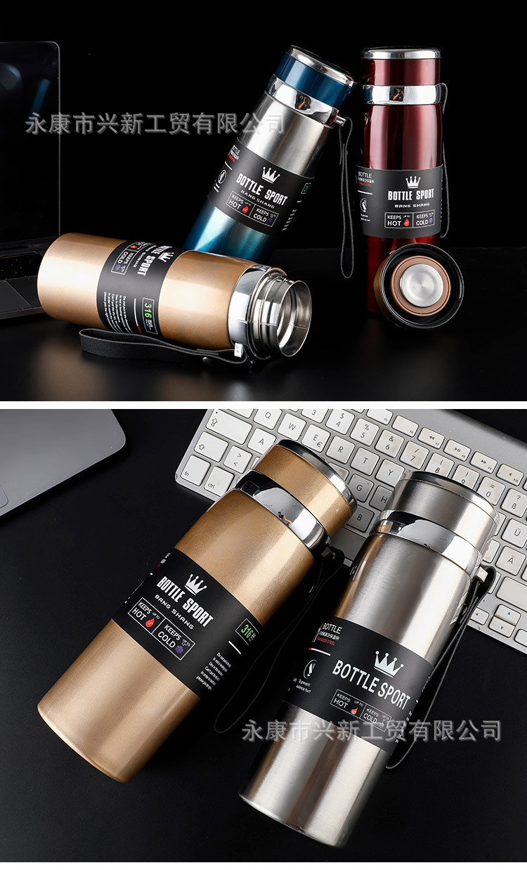 스테인레스 스틸 보온병 컵 대용량 등반 주전자 야외 스포츠 진공 슬링 냄비 비즈니스 활동 선물 맞춤화