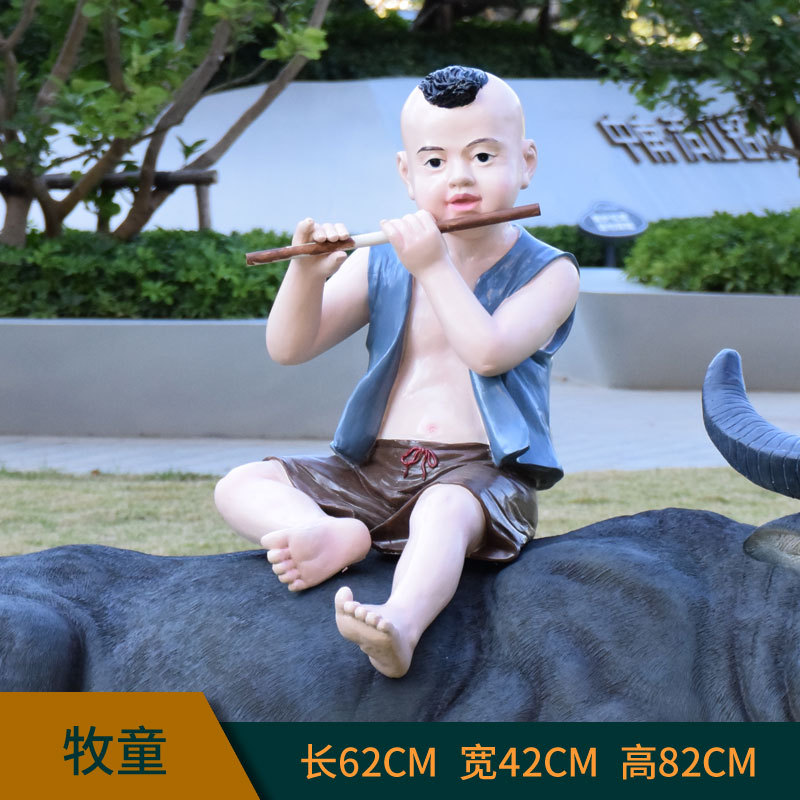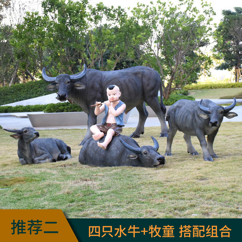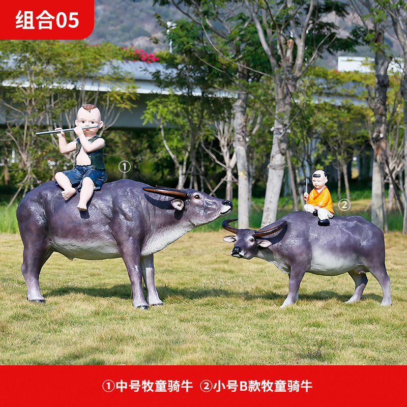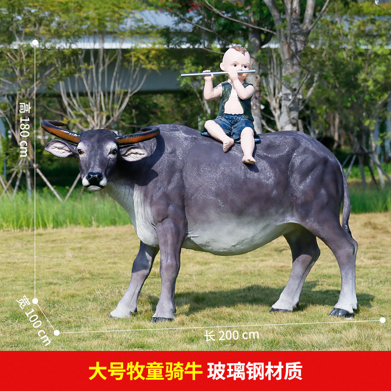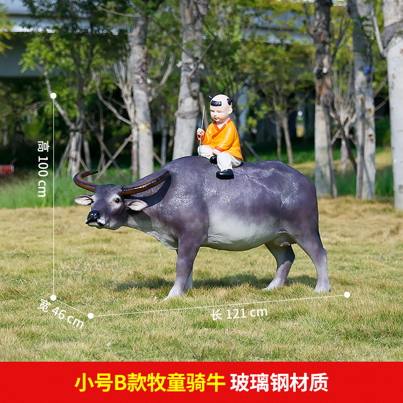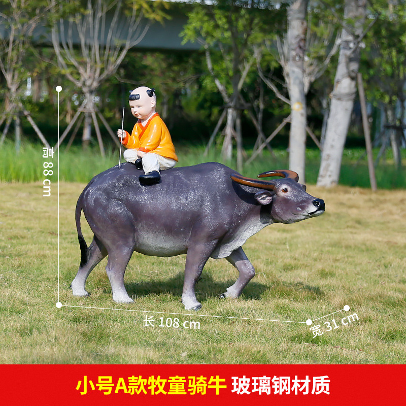 정원 목자 소년 승마 시뮬레이션 버팔로 조각 모형 장식품 큰 동물 유리 섬유 강화 플라스틱 야외 풍경 장식스토어 가기