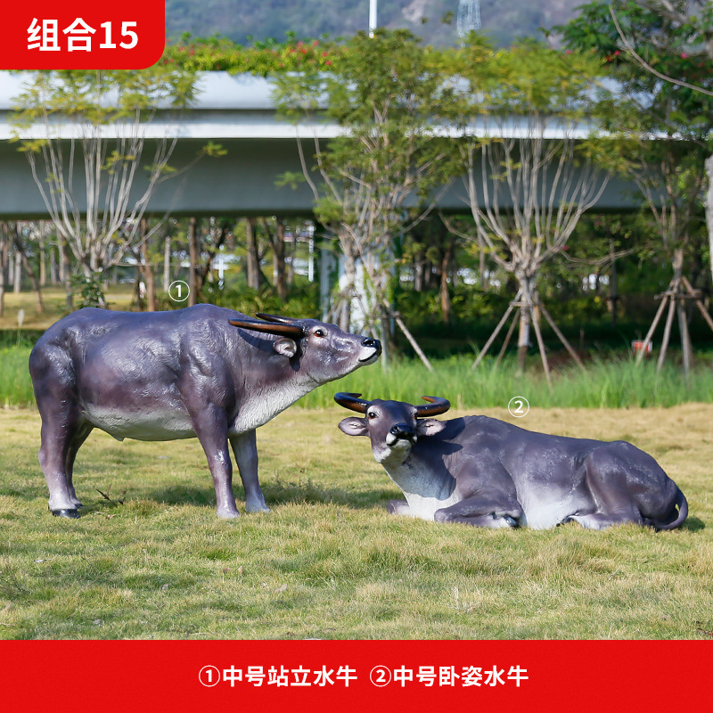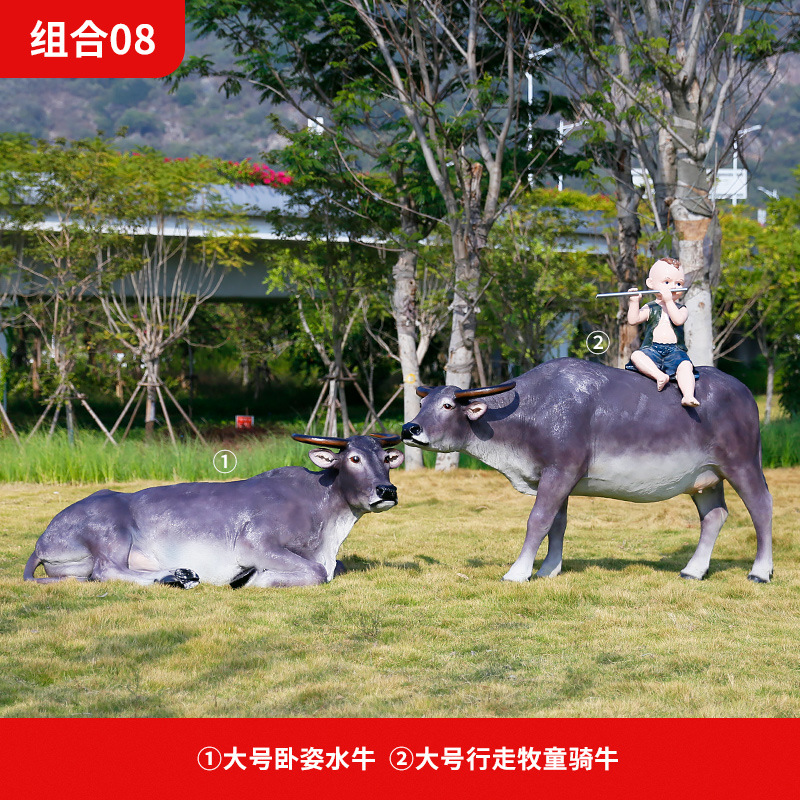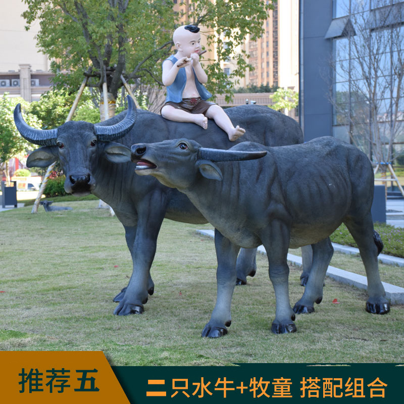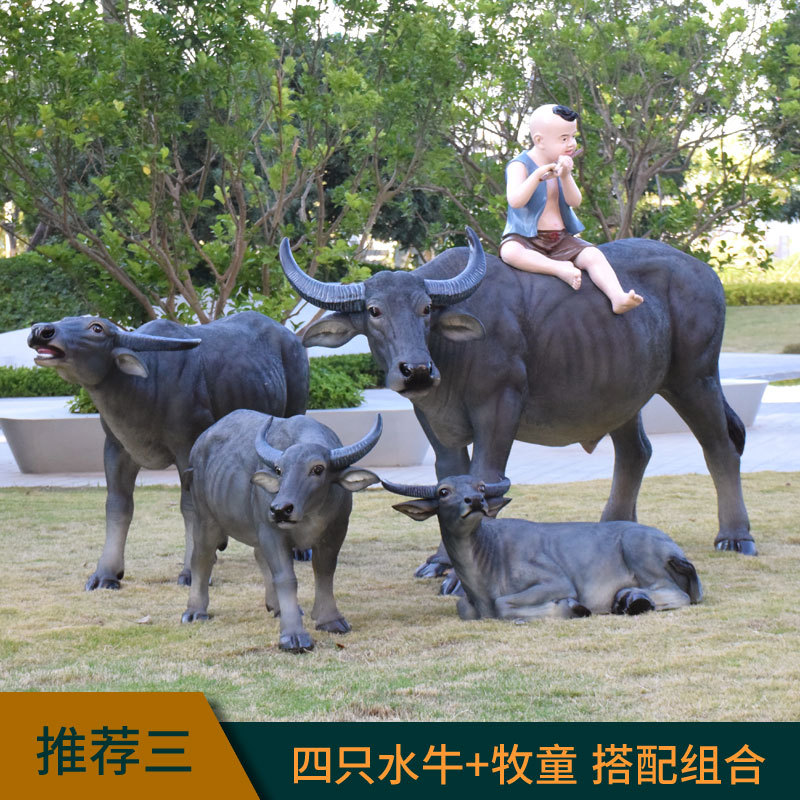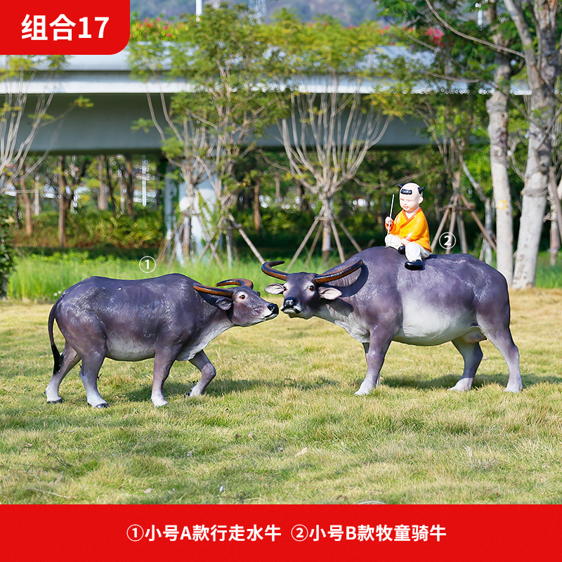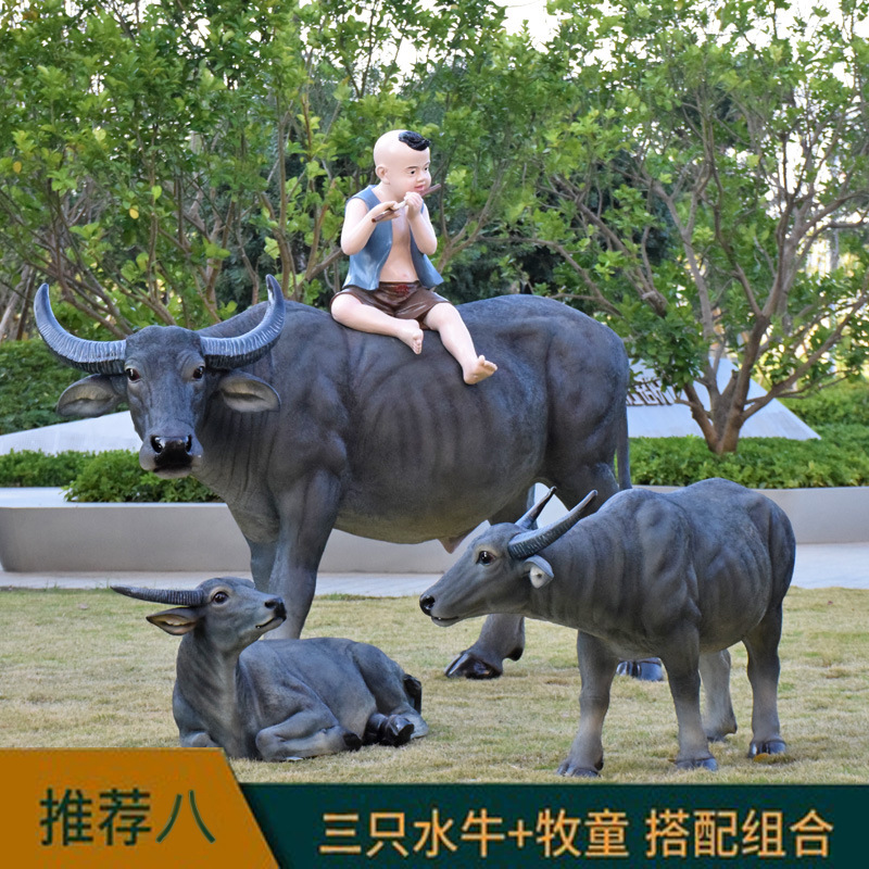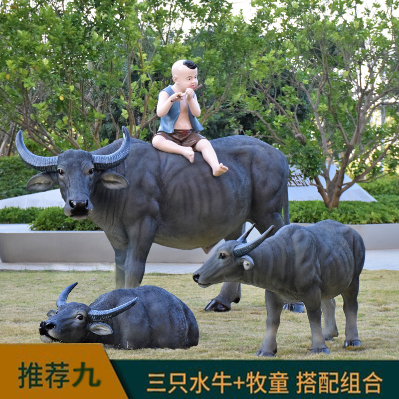 정원 목자 소년 승마 시뮬레이션 버팔로 조각 모형 장식품 큰 동물 유리 섬유 강화 플라스틱 야외 풍경 장식스토어 가기