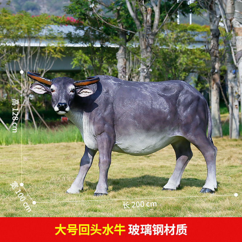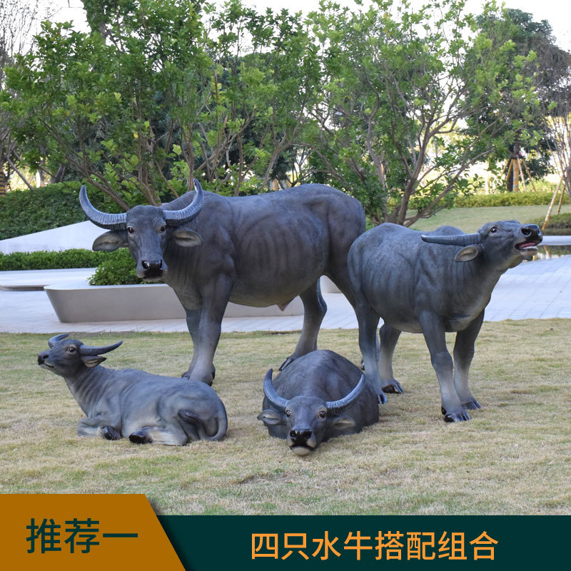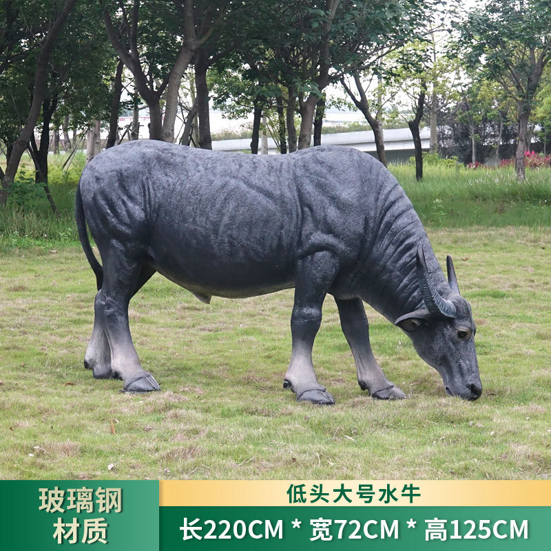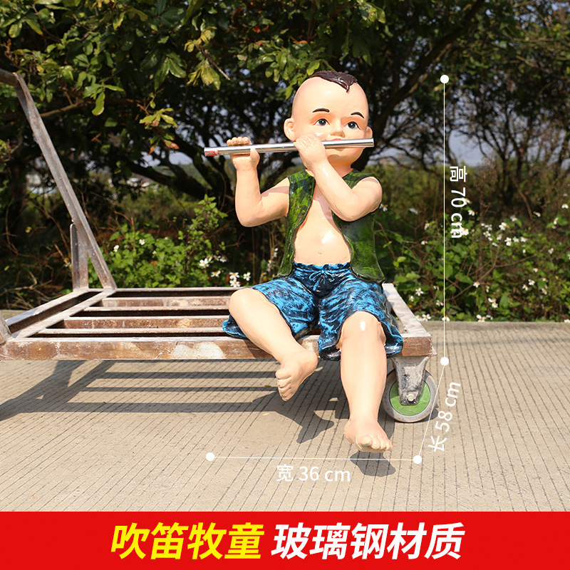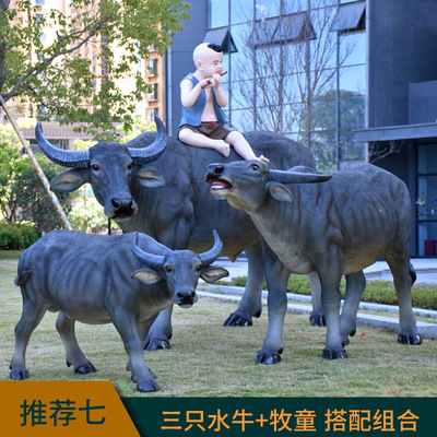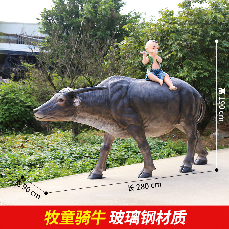 정원 목자 소년 승마 시뮬레이션 버팔로 조각 모형 장식품 큰 동물 유리 섬유 강화 플라스틱 야외 풍경 장식