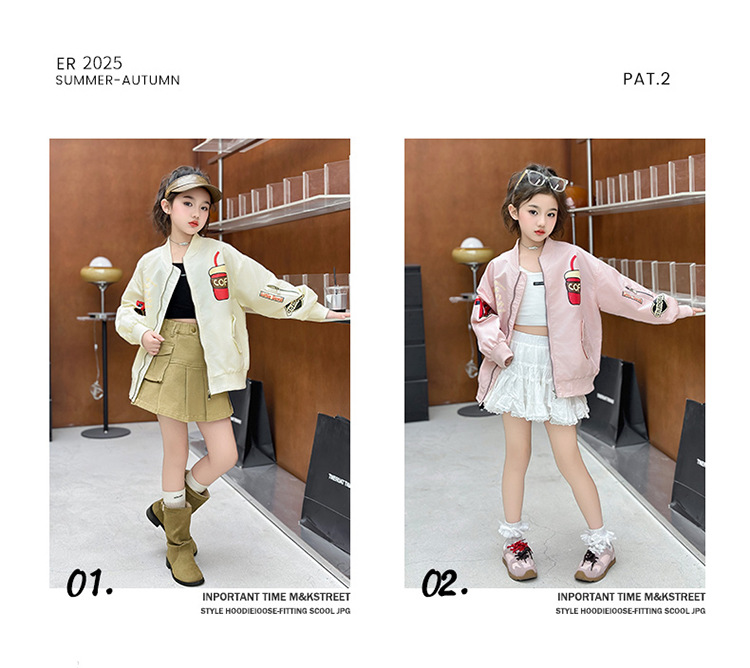 여자 야구 세트 코트 2025 년 봄과 가을 새로운 도착 CUHK 어린이 서양식 캐주얼 패션 올 매치 재킷 탑스토어 가기
