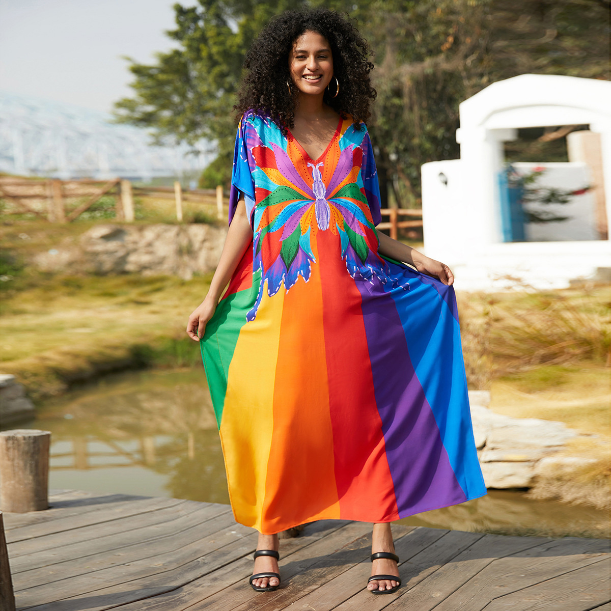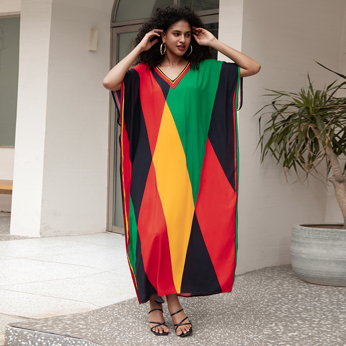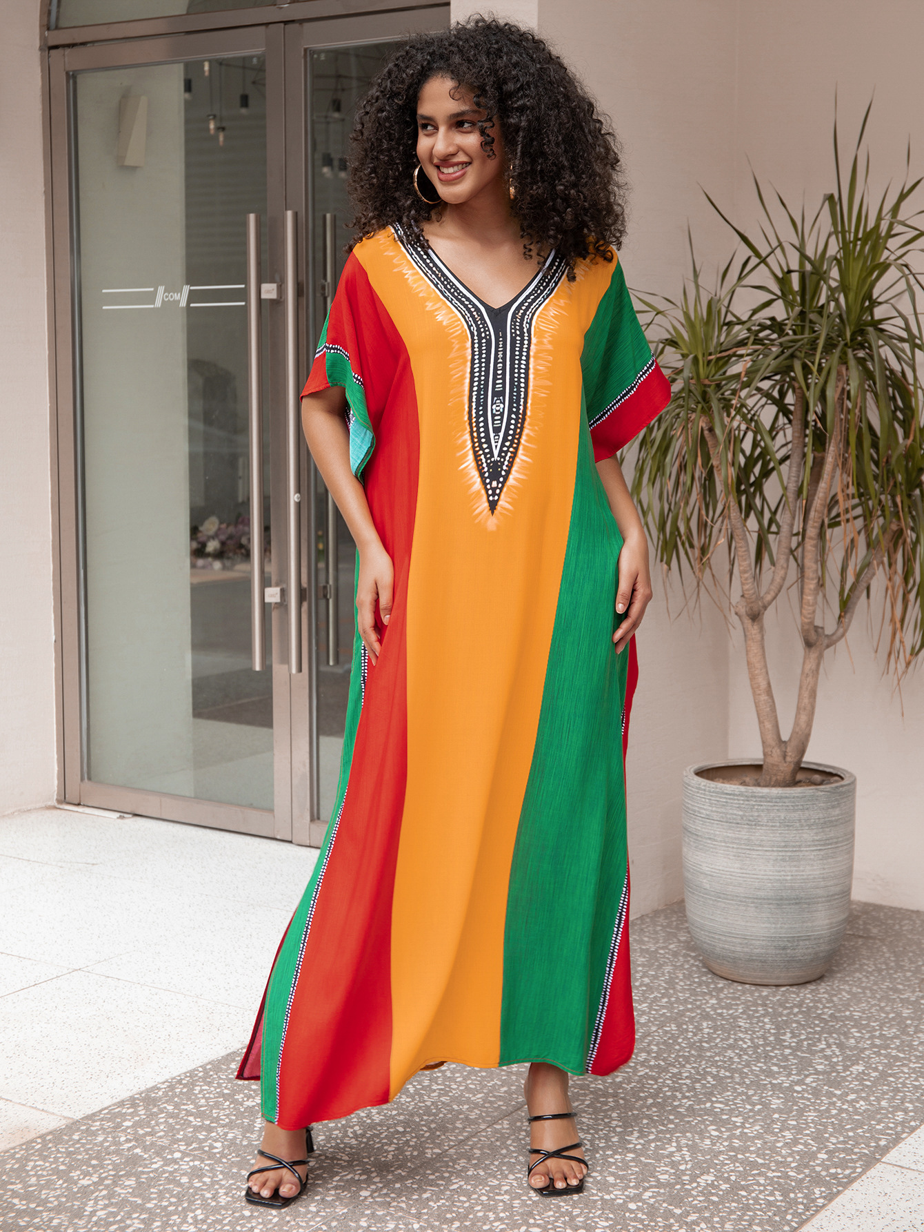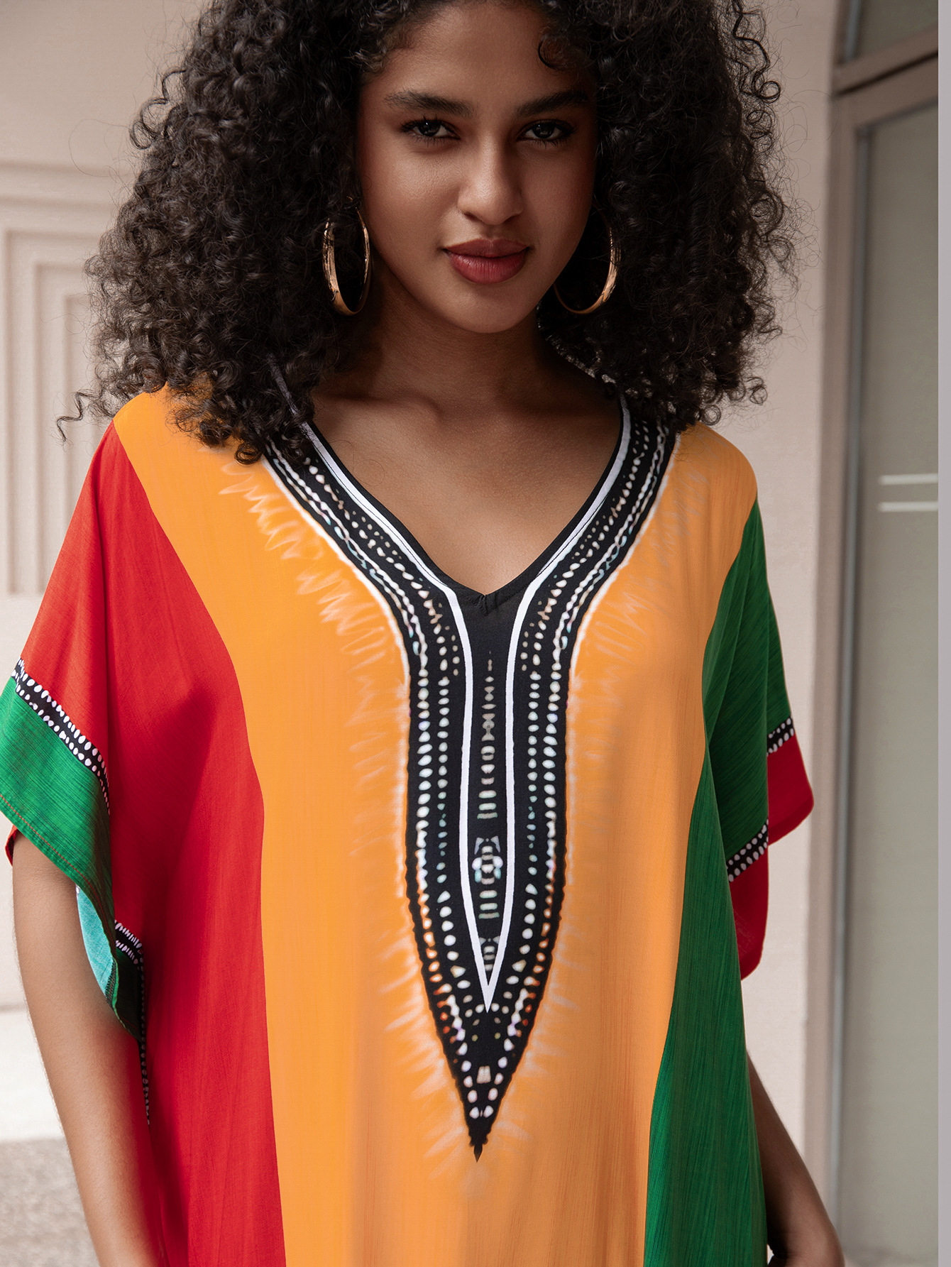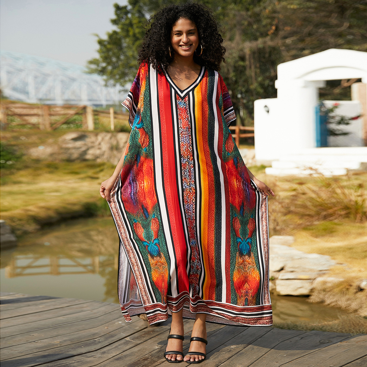비치 블라우스 코튼 포지셔닝 인쇄 된 휴가 로브 국경 아마존 느슨한 새로운 도로 대비 색상