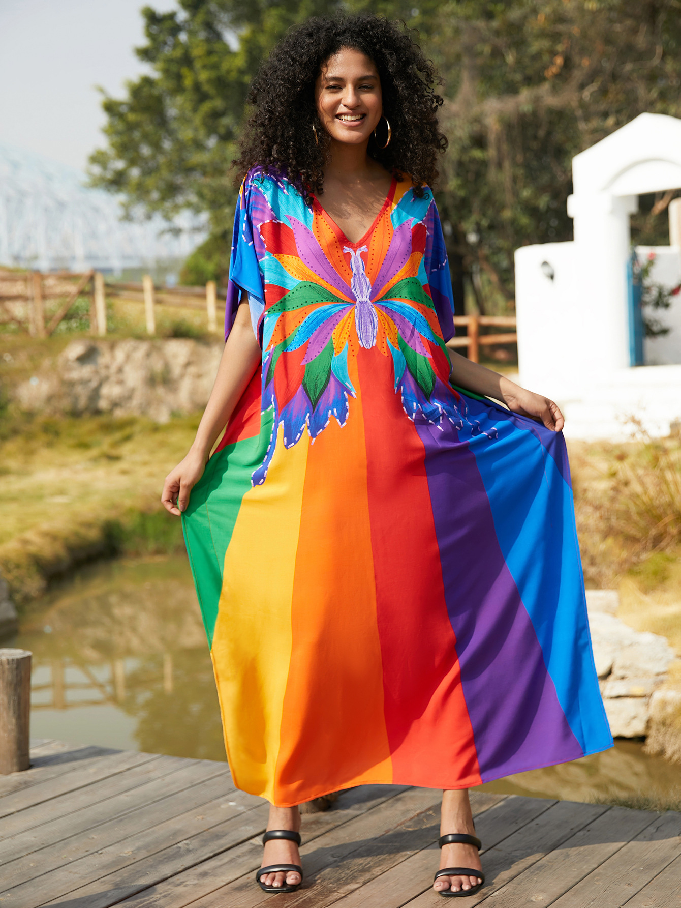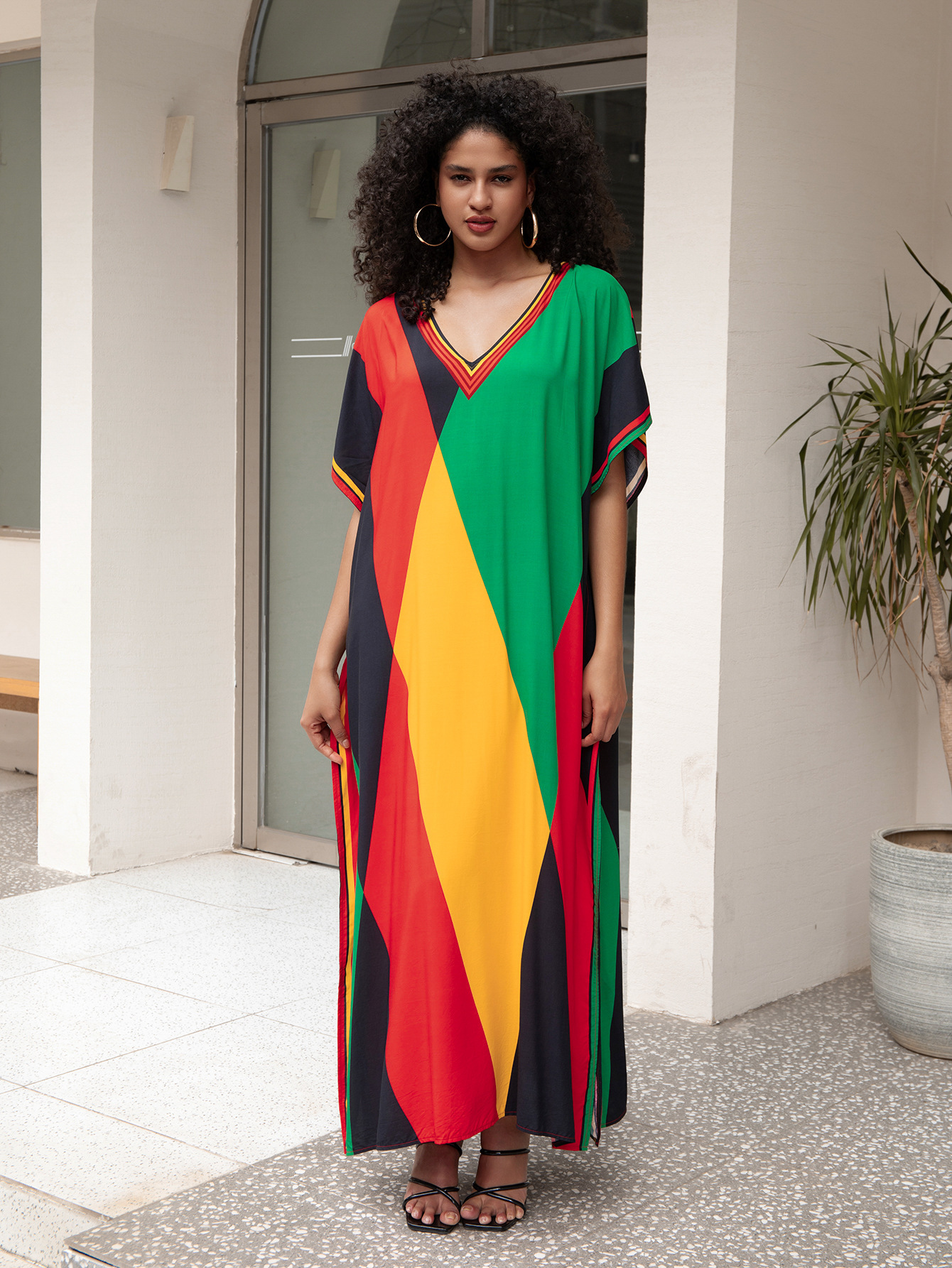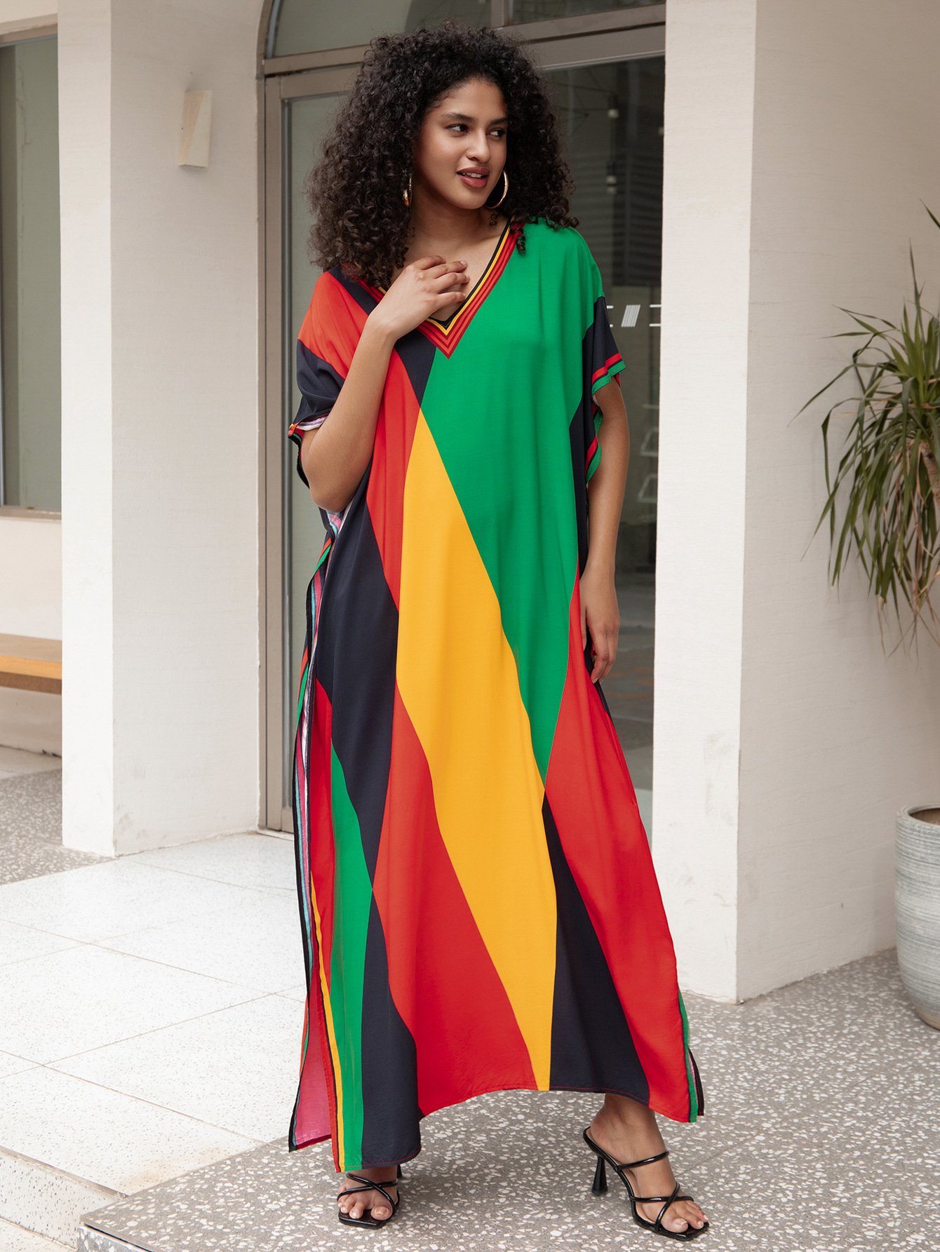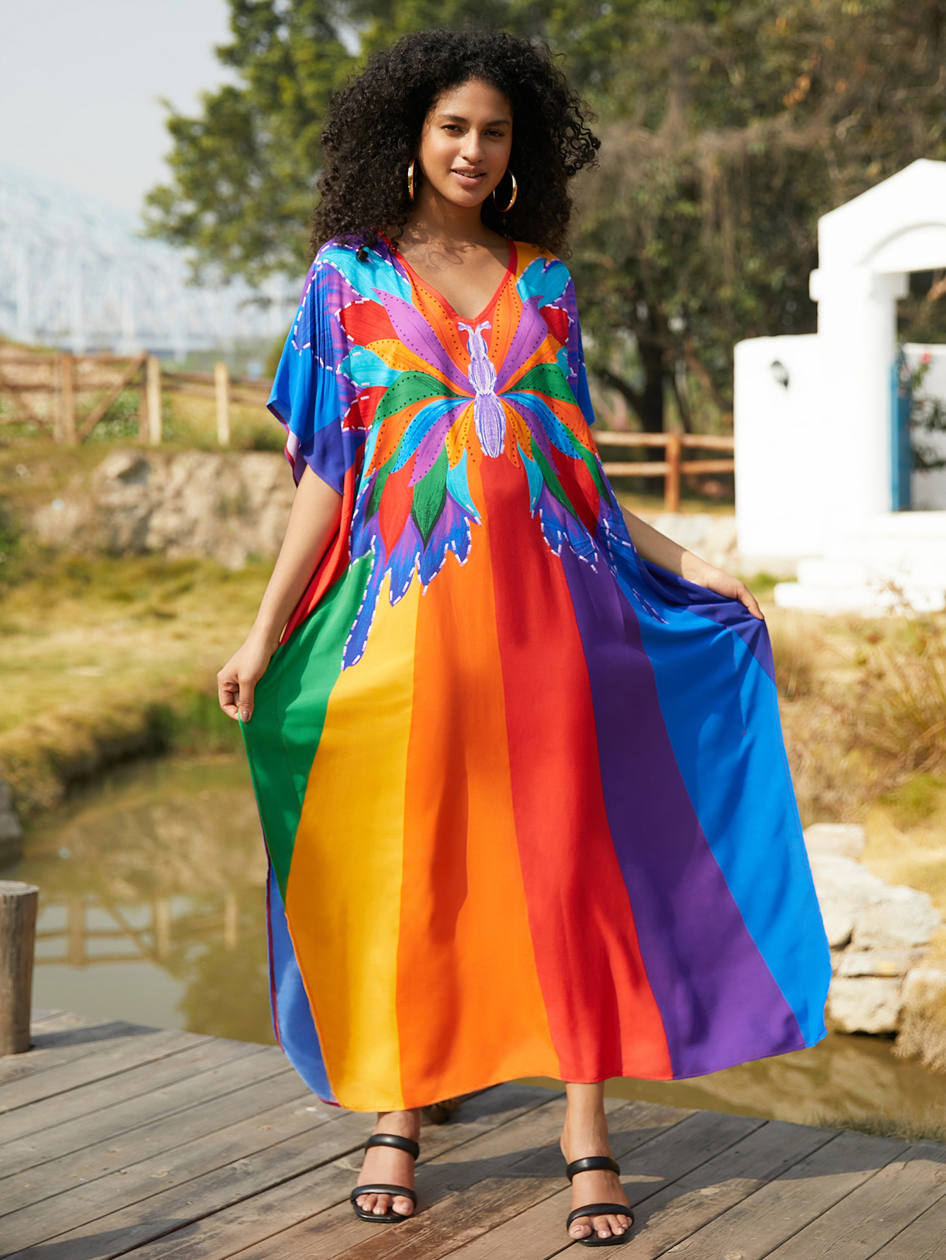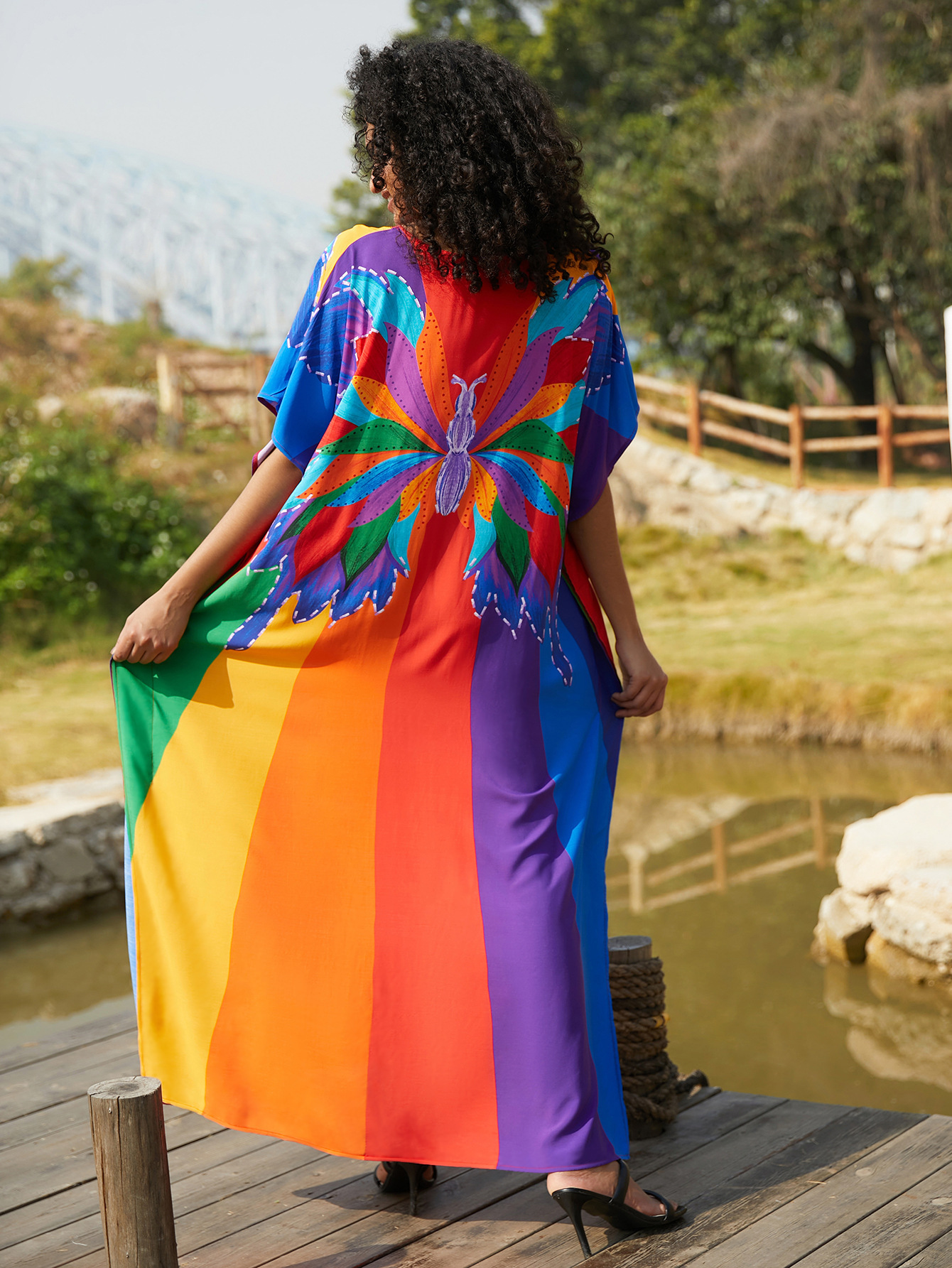 비치 블라우스 코튼 포지셔닝 인쇄 된 휴가 로브 국경 아마존 느슨한 새로운 도로 대비 색상