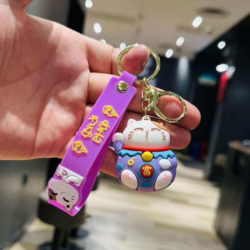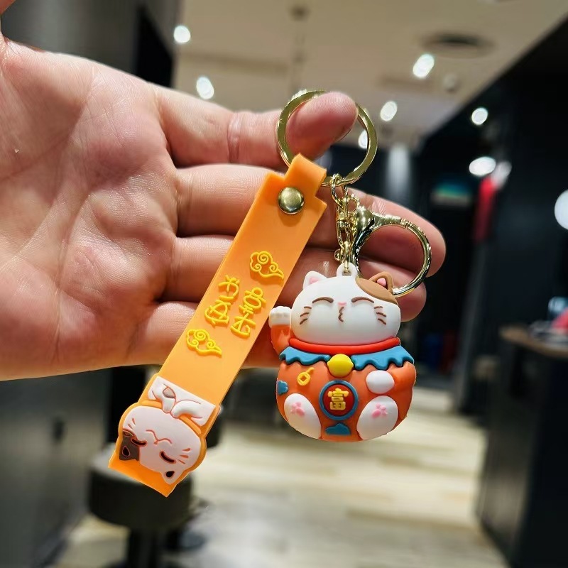 귀여운 펭귄 키 체인 행운의 고양이 루빅스 큐브 펜던트 커플 가방 자동차 키 펜던트 인형 기계 장신구