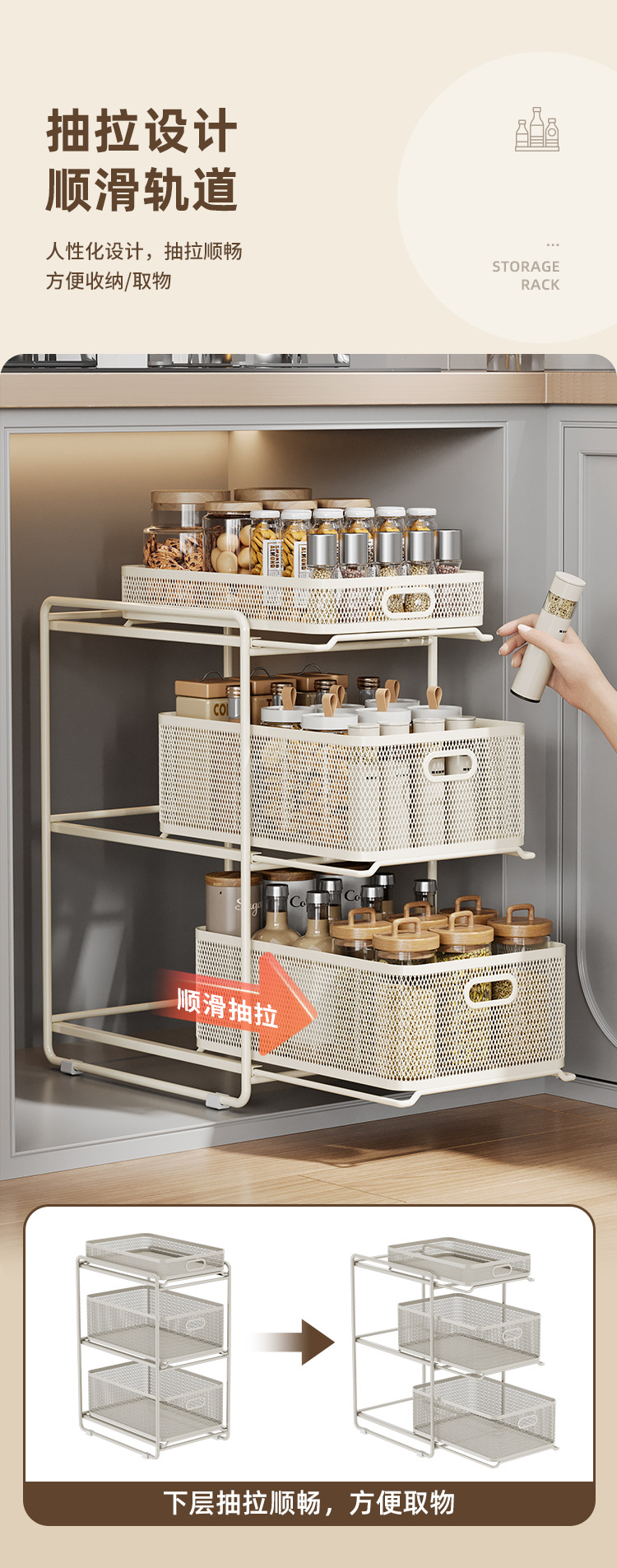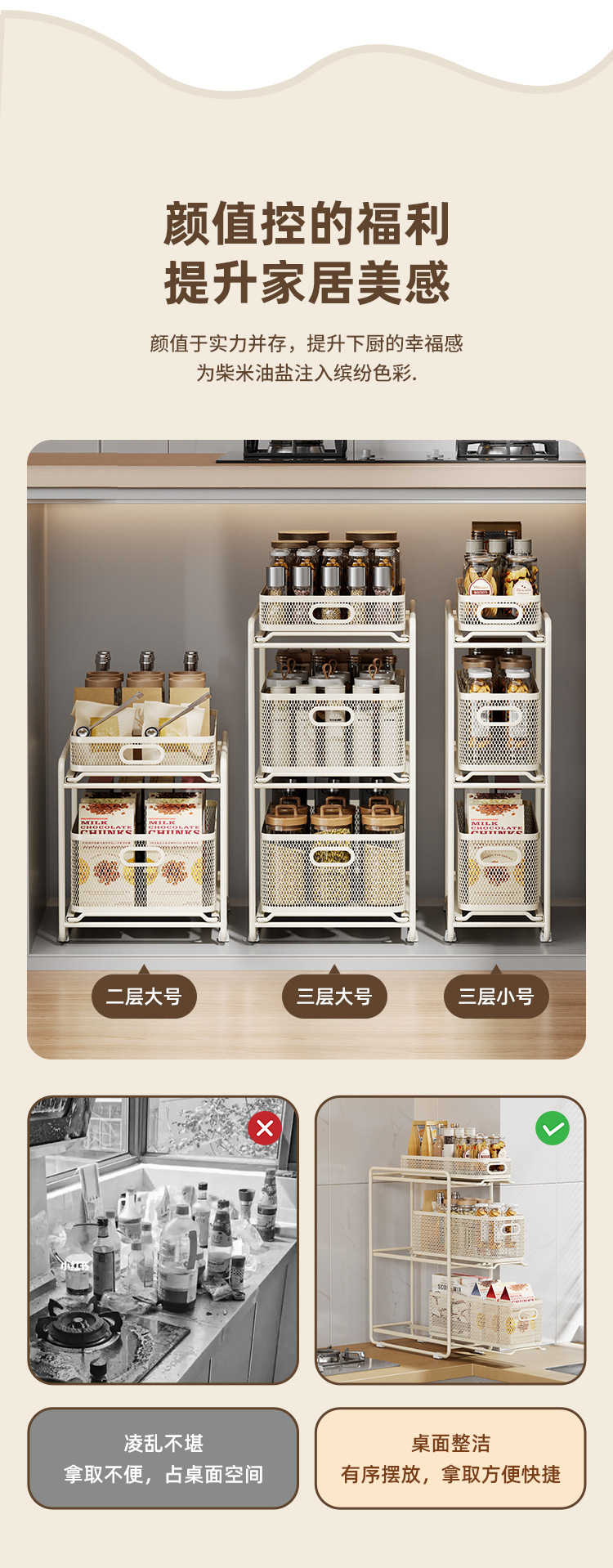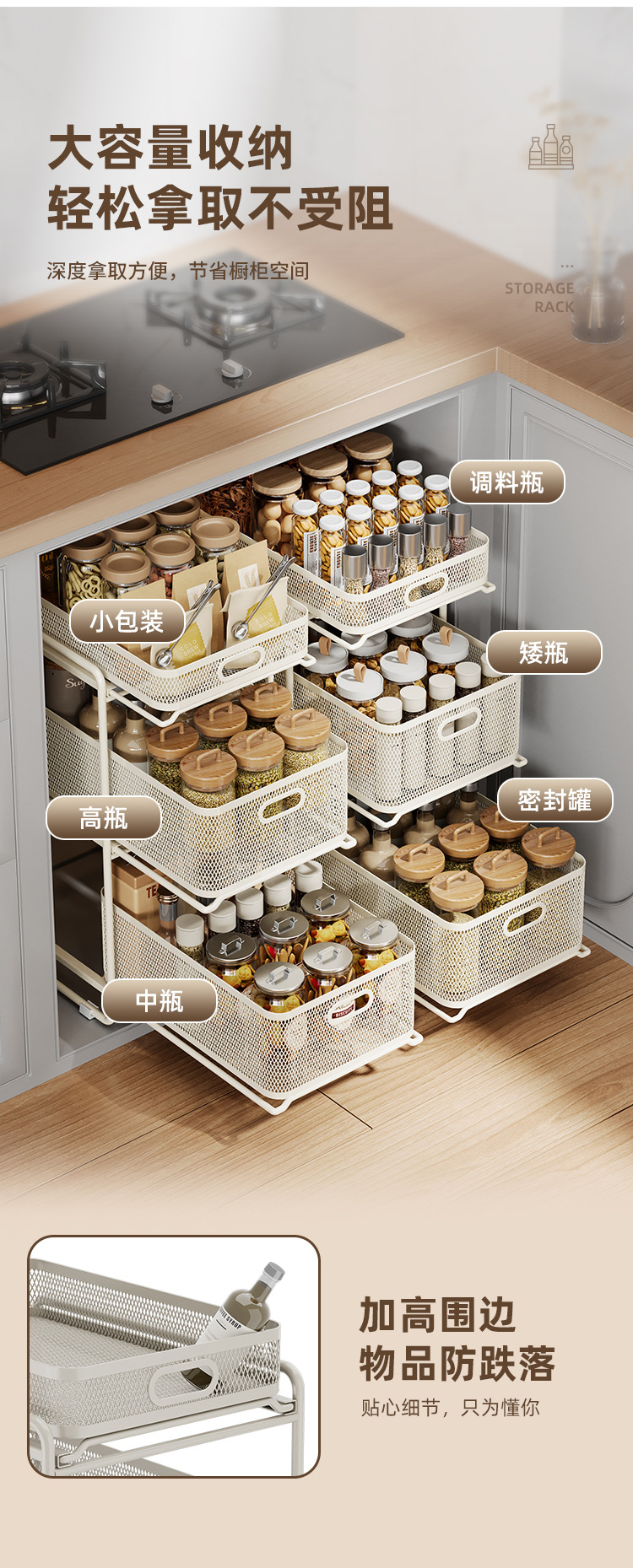 싱크대 저장 랙 가정용 인공물 접시 기름 소금 소스 식초 저장 랙에서 캐비닛 적층 랙 주방 저장 랙
