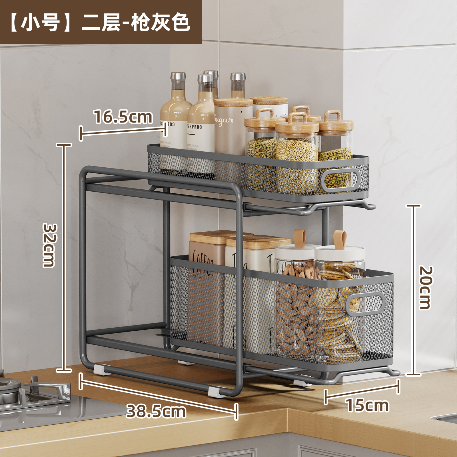 • [건그레이] 소형 2단 인출식 바구니 수납선반 [다이아몬드형]
