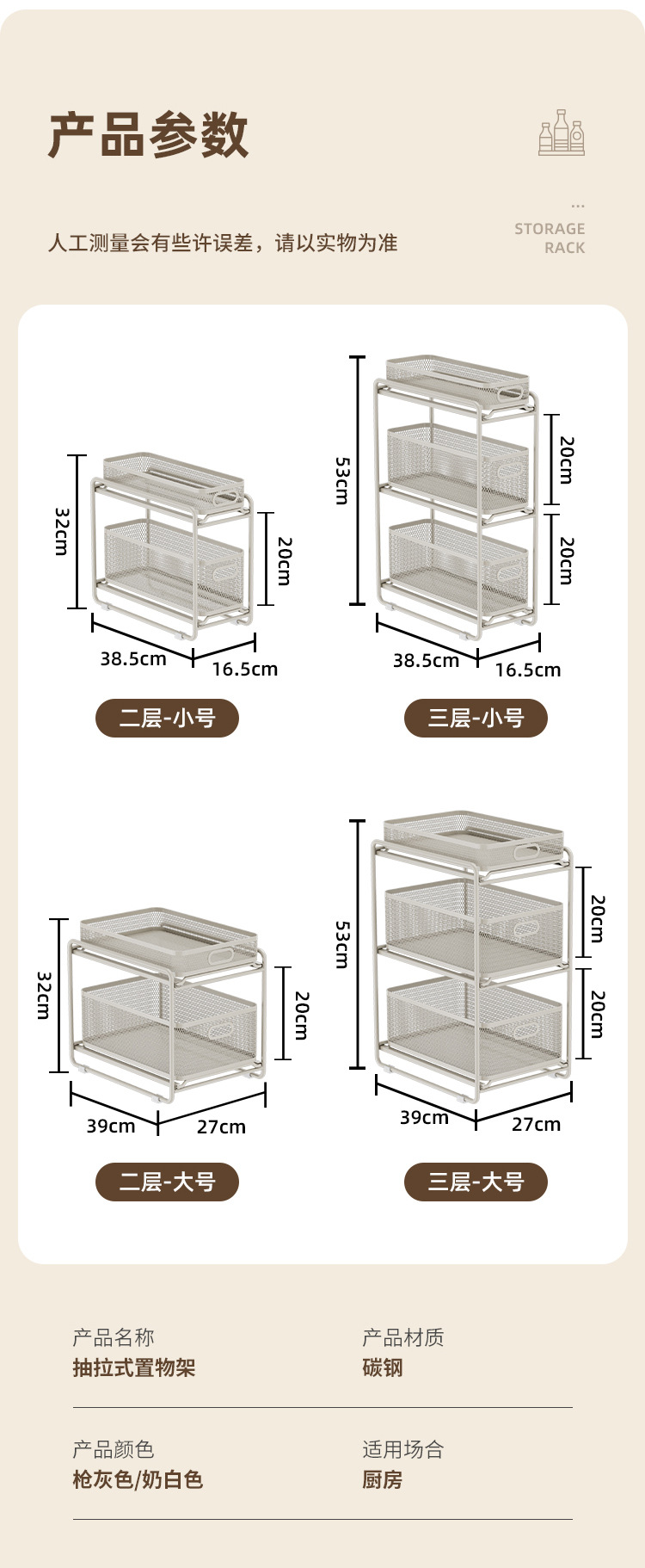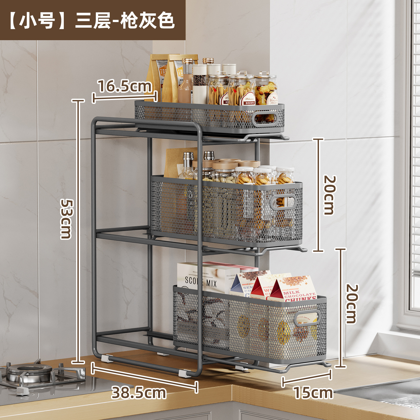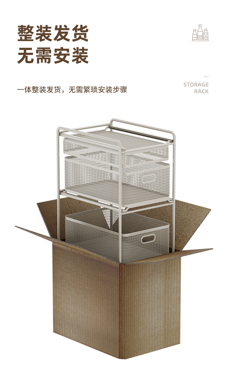 • [건그레이] 소형 3단 인출식 바구니 수납선반 [다이아몬드형]