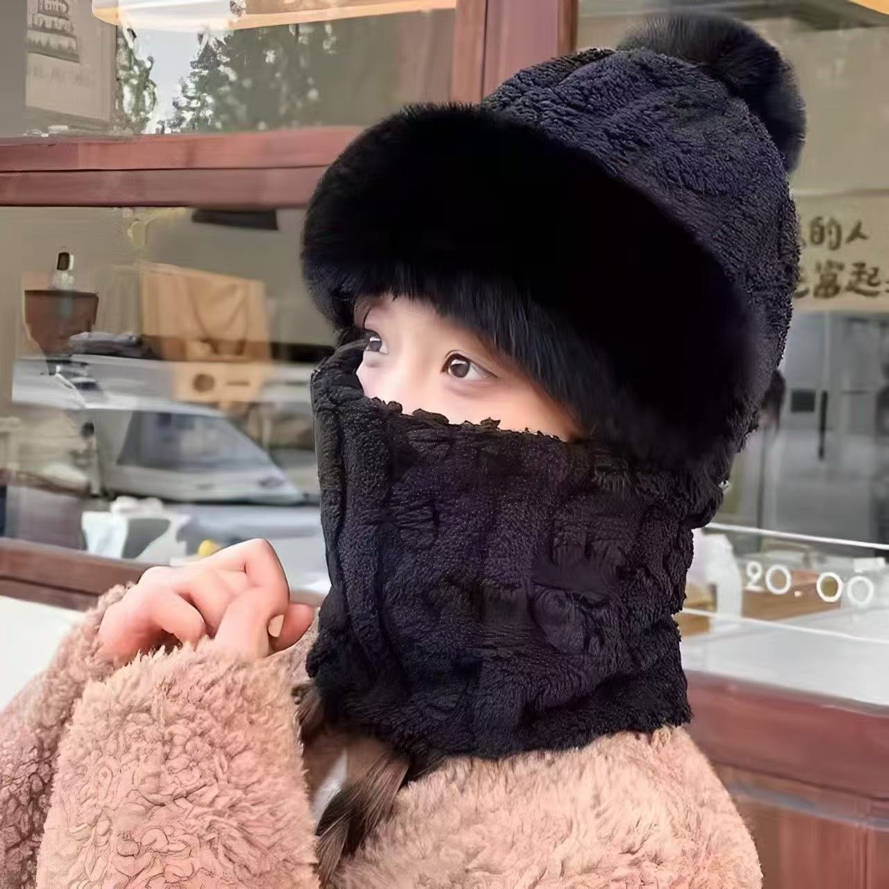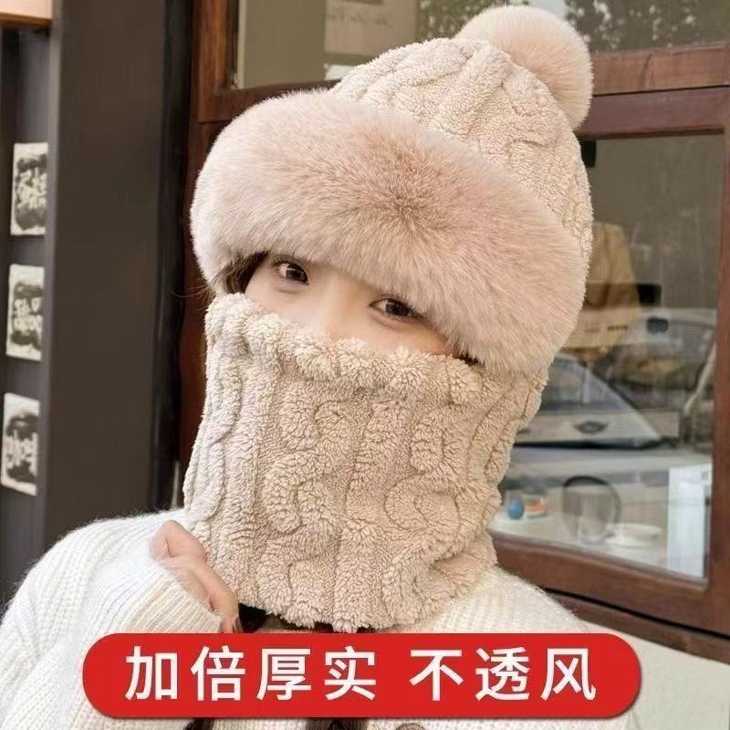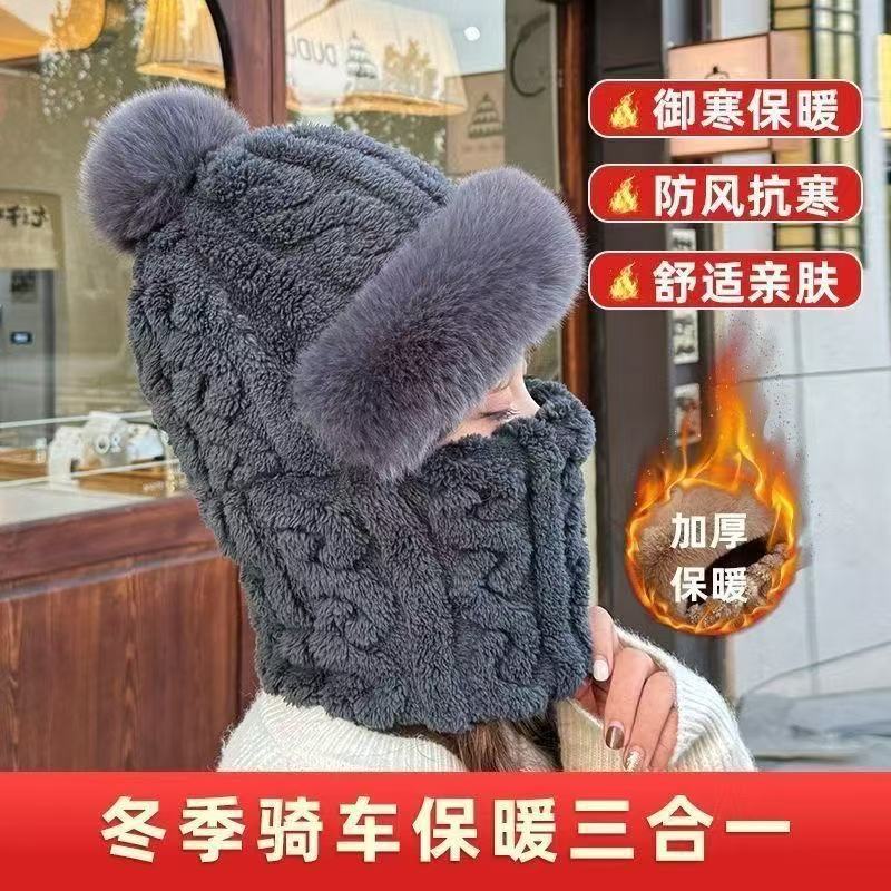 가을과 겨울 모자 여성의 기모 두꺼운 야외 승마 방풍 모자 턱받이 마스크 통합 귀 보호 따뜻한 풀오버 캡