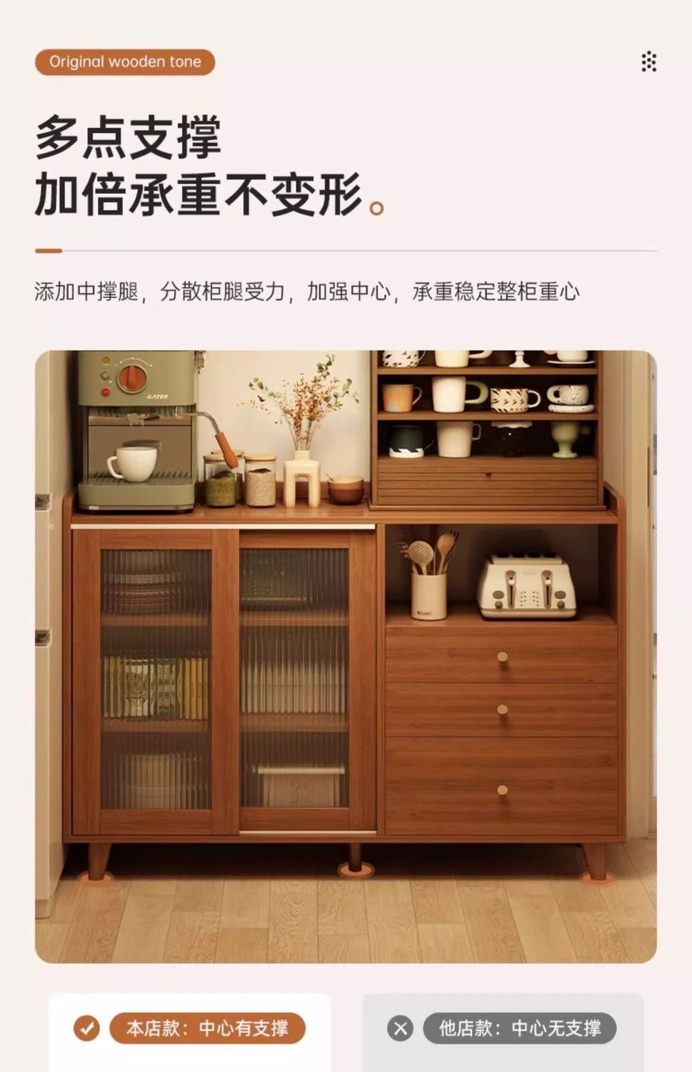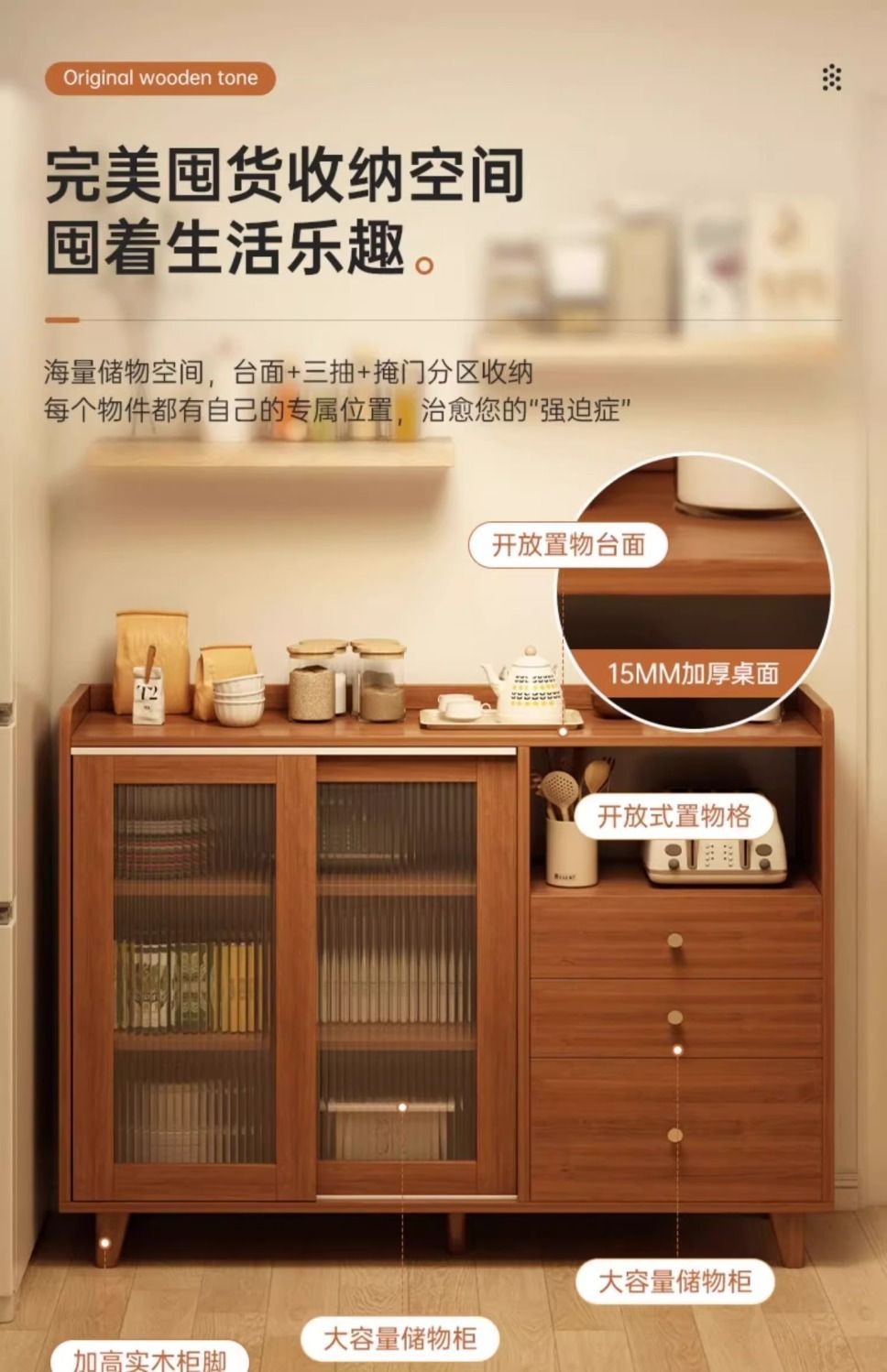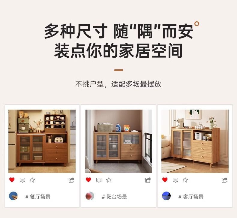 모조 솔리드 우드 사이드 보드 주방 찬장 보관 캐비닛 거실 보관 선반 다층 잡화 캐비닛스토어 가기