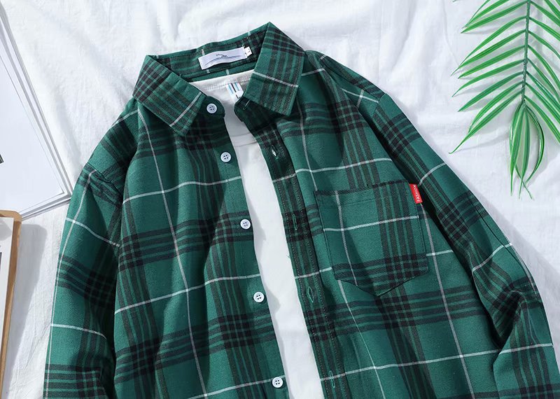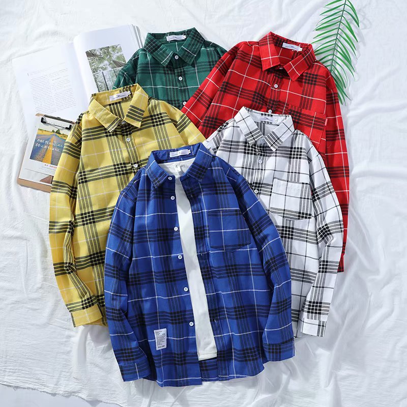 Ouruofeng 격자 무늬 셔츠 남자 긴팔 한국 유행 예술적 하라주쿠 캐주얼 봄과 가을 셔츠 학생 트렌디 탑스토어 가기